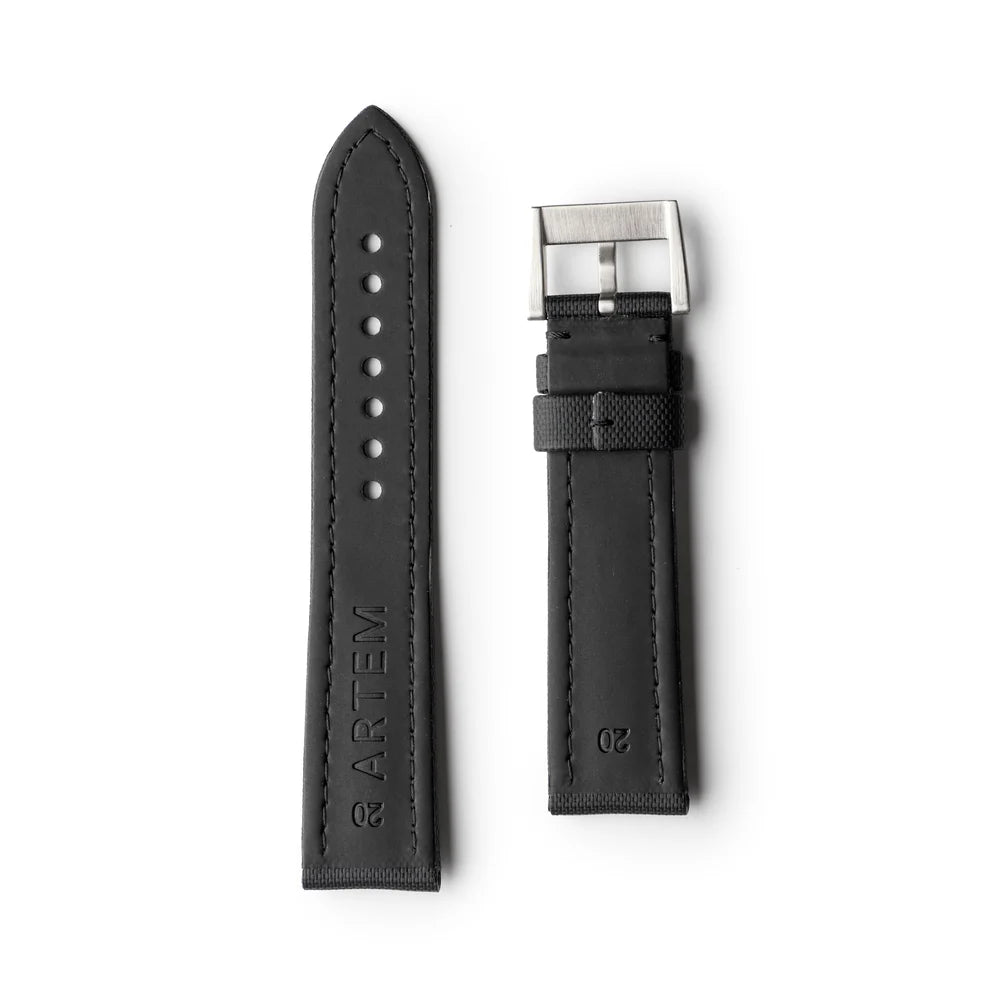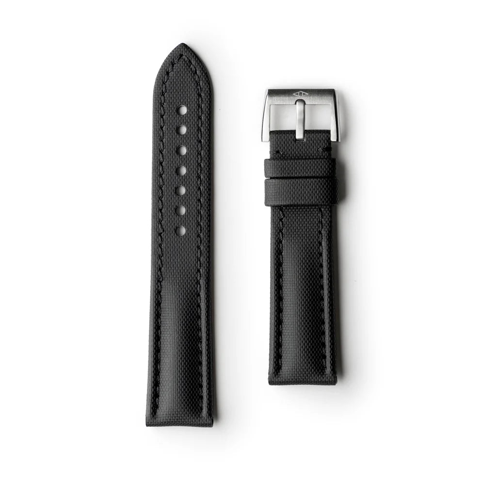 Artem Classic Black Sailcloth Watch Strap with Black Stitching