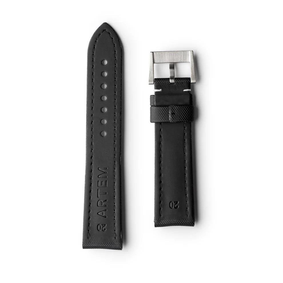 Artem Classic Black Sailcloth Watch Strap with White Stitching