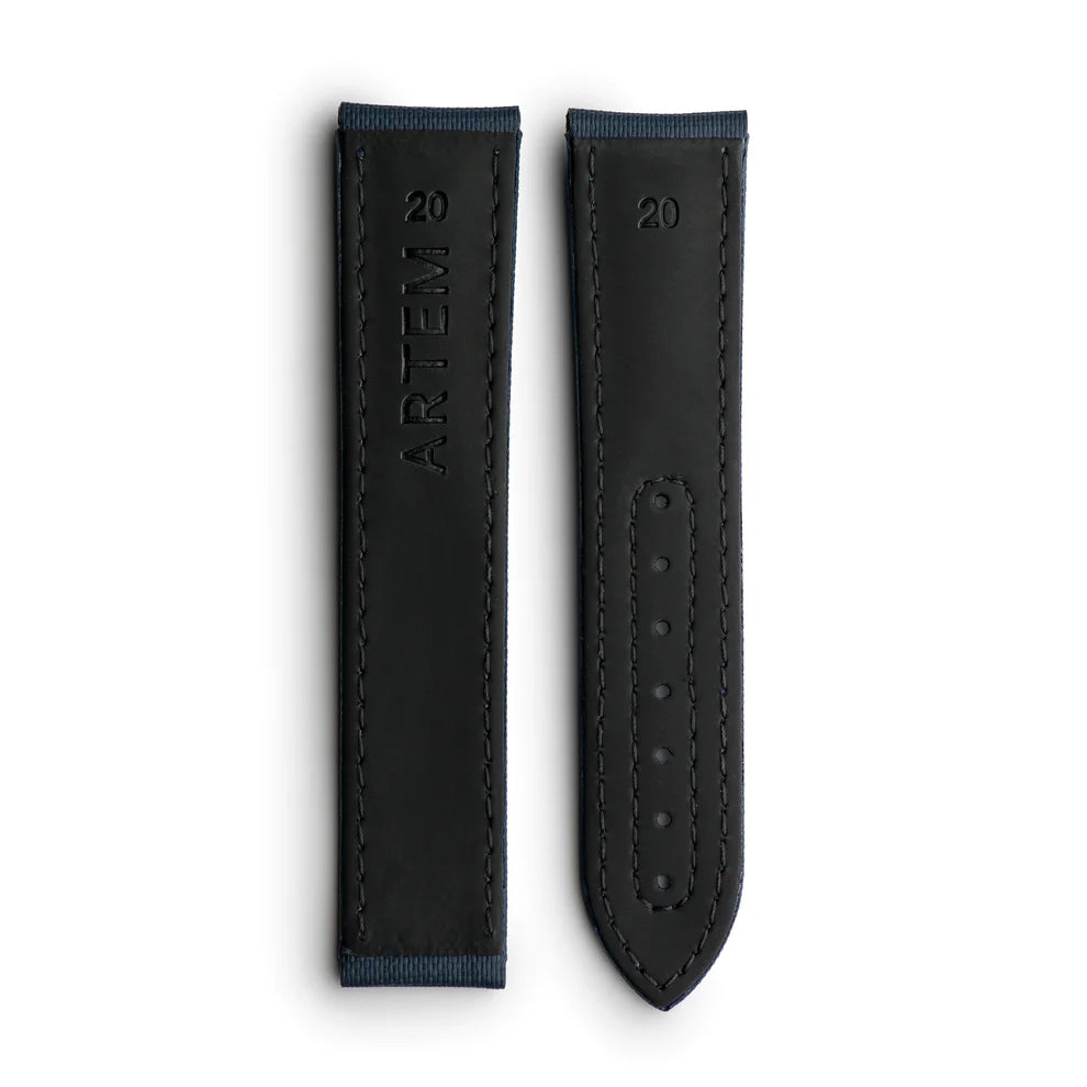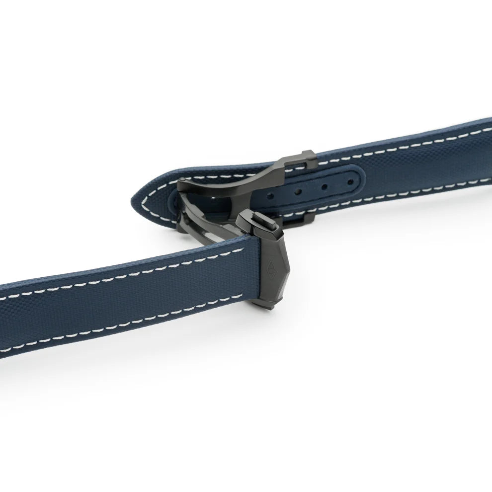 The Artem Loop-Less™ Navy Blue Sailcloth Watch Strap with White Stitching is a sophisticated and functional addition to any timepiece. Made from high-grade sailcloth material, this strap combines durability and water resistance, ideal for daily wear and demanding environments. The sailcloth construction offers a textured finish that gives the strap a sleek, modern look, while the all-black design with matching blue stitching adds a minimalist, monochromatic appeal.