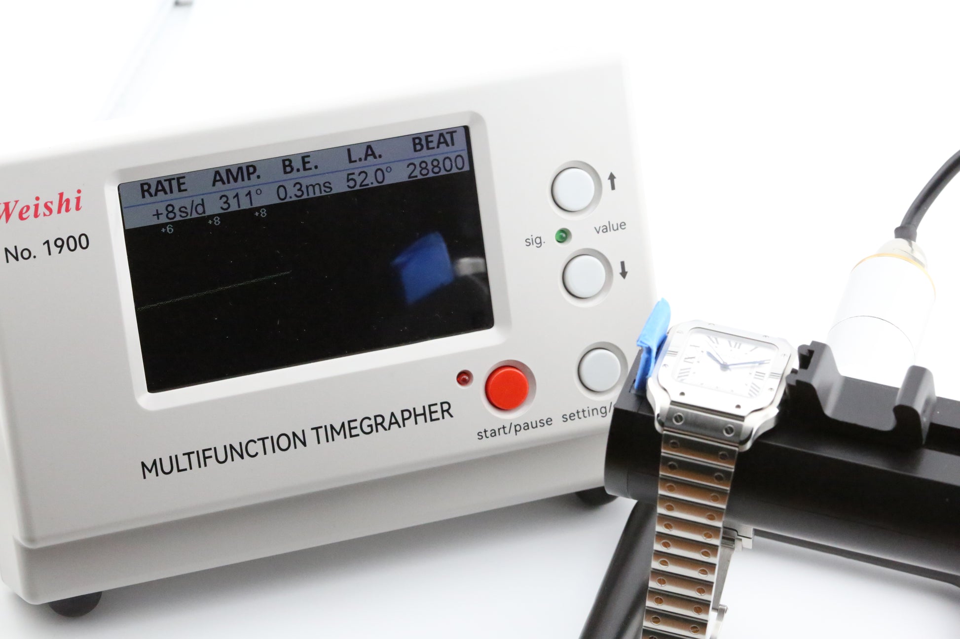 Iconic exposed screws on bezel, a hallmark of the Santos collection