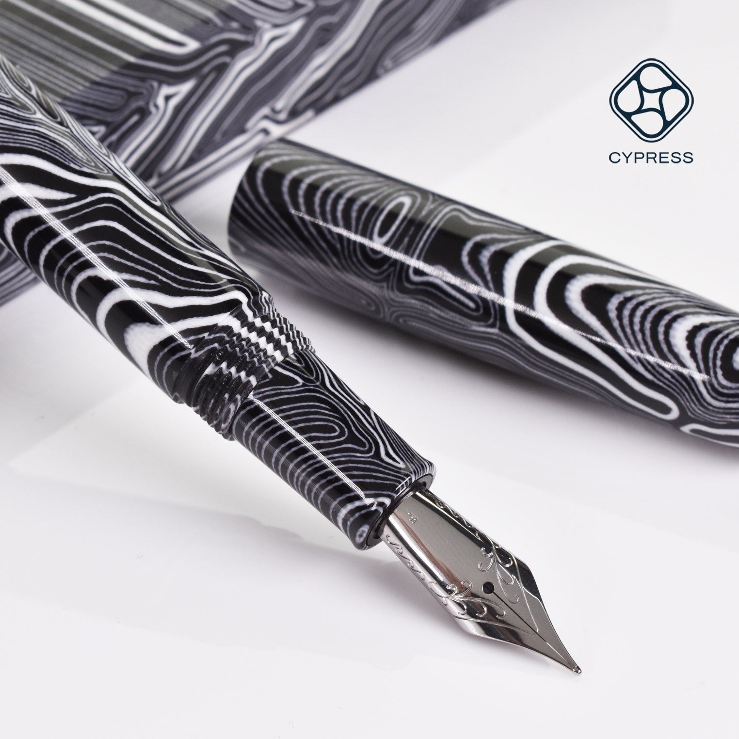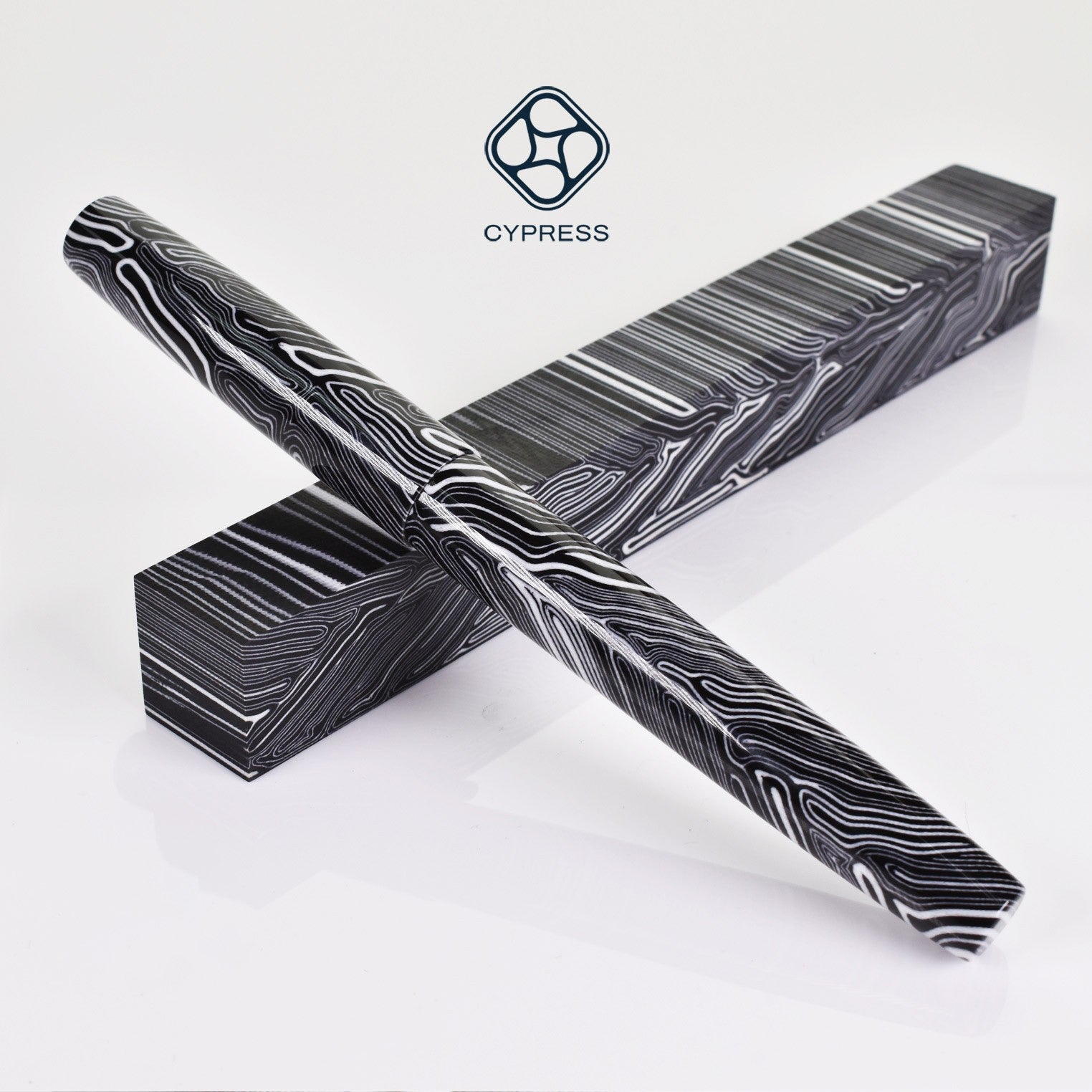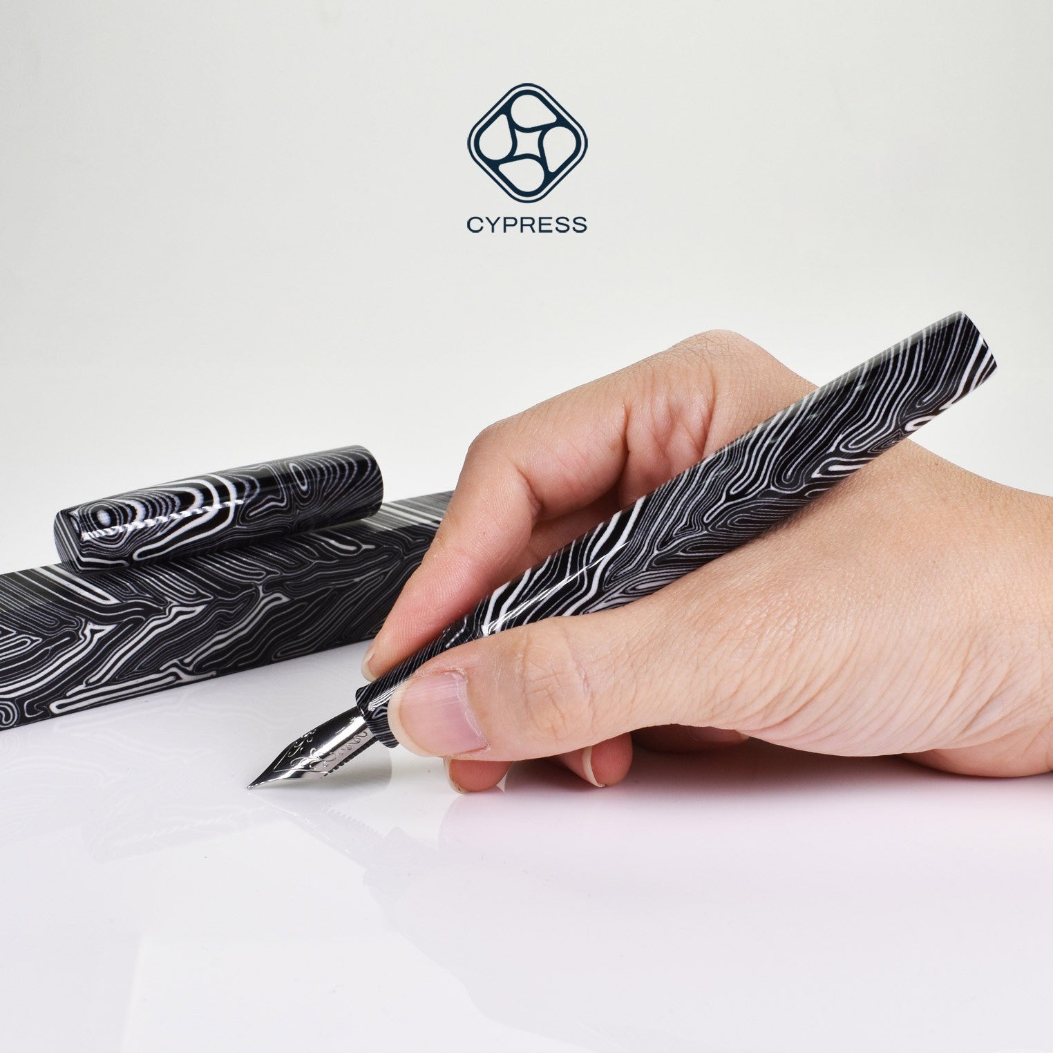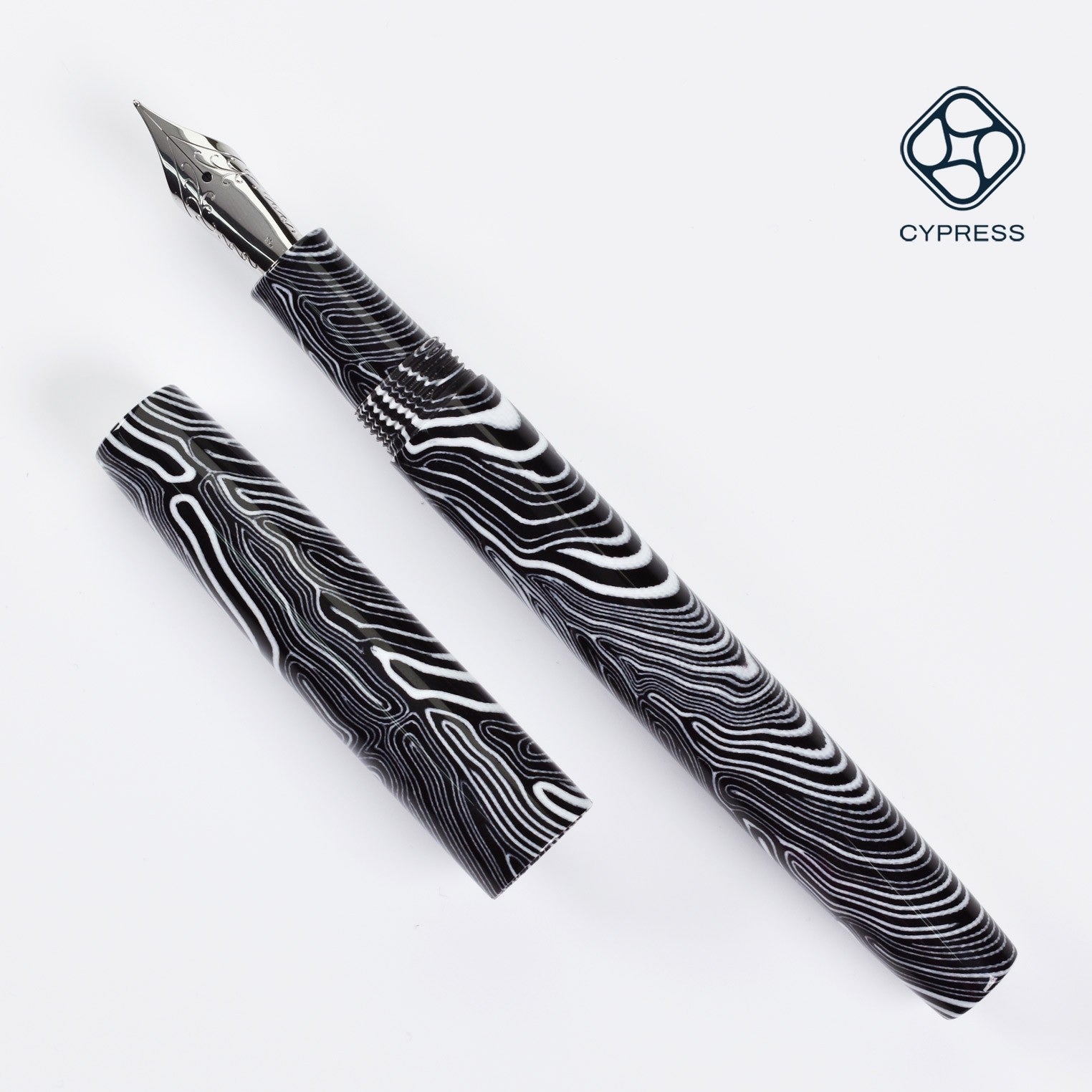 The Cypress Black and White G10 Fountain Pen is a perfect fusion of cutting-edge material science and sleek design. The body of the pen is crafted from G10, a high-pressure fiberglass laminate renowned for its exceptional strength, lightweight nature, and resistance to wear and impact. The unique black and white pattern of the G10 material gives the pen a bold, modern appearance, with a textured surface that enhances both grip and style.