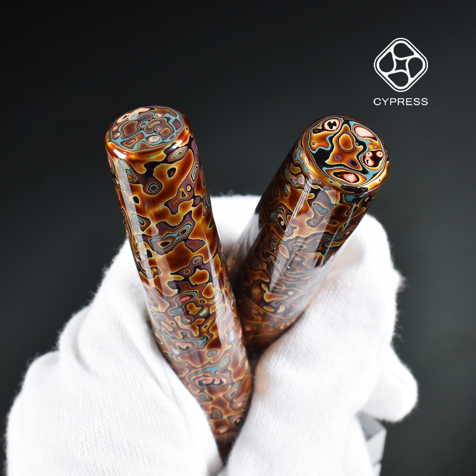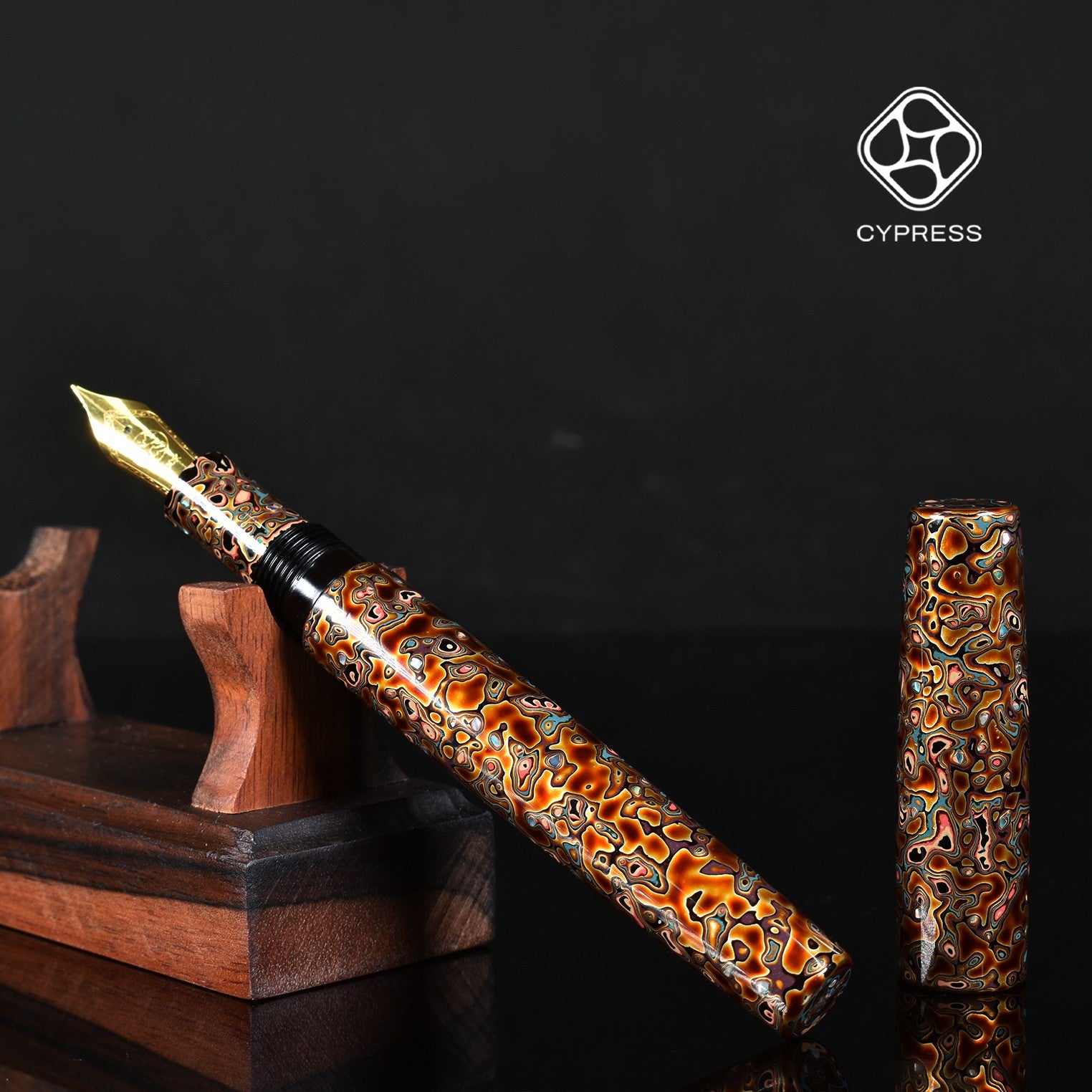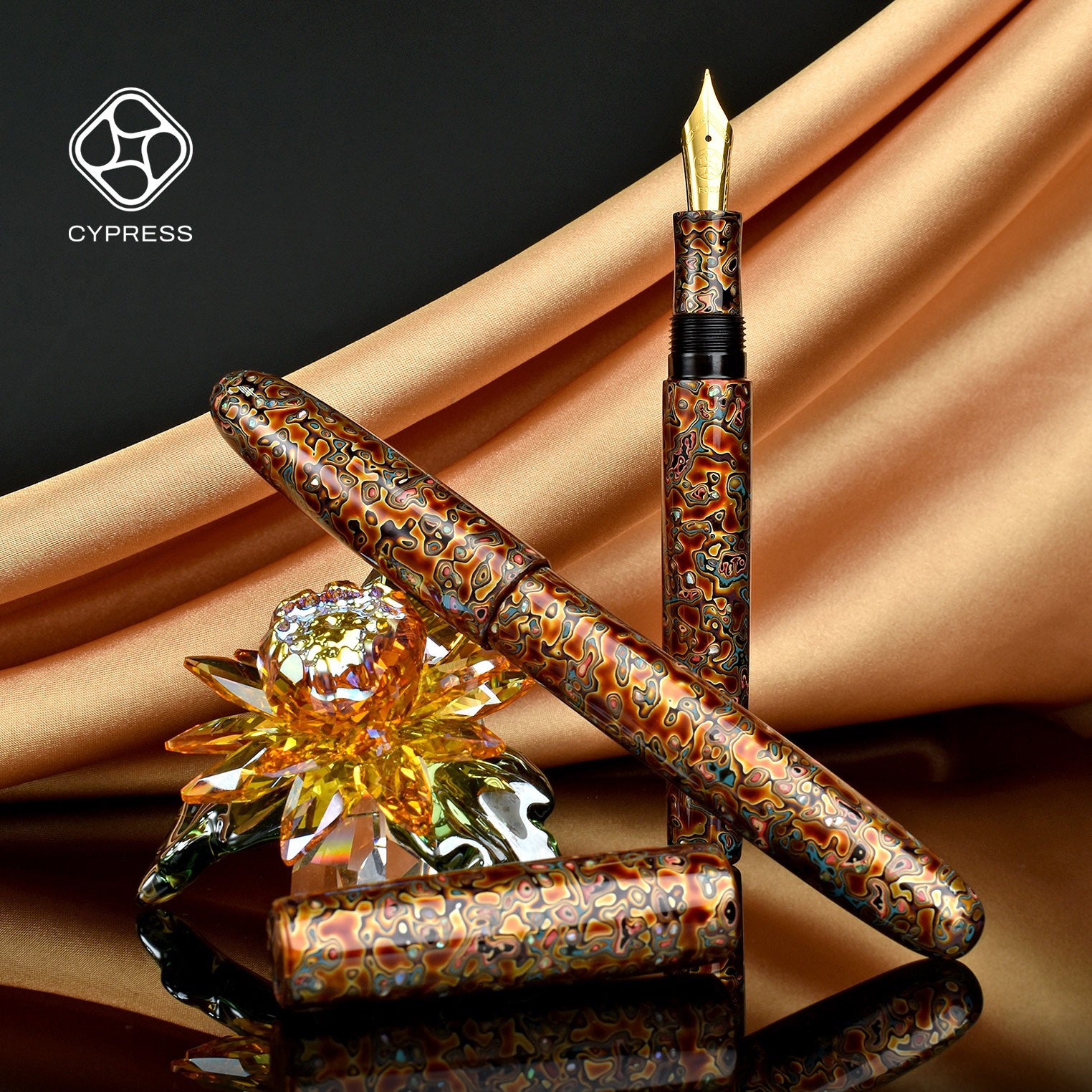 The Cypress Kawari-nuri #216 Fountain Pen is a masterpiece of traditional artistry, showcasing the unique Kawari-nuri lacquer technique, where multiple layers of Urushi lacquer are skillfully applied to the pen body to create intricate, abstract patterns. Each pen is an individual work of art, as the Kawari-nuri process results in a distinctive, marbled design that cannot be replicated, making every piece a one-of-a-kind collector’s item.