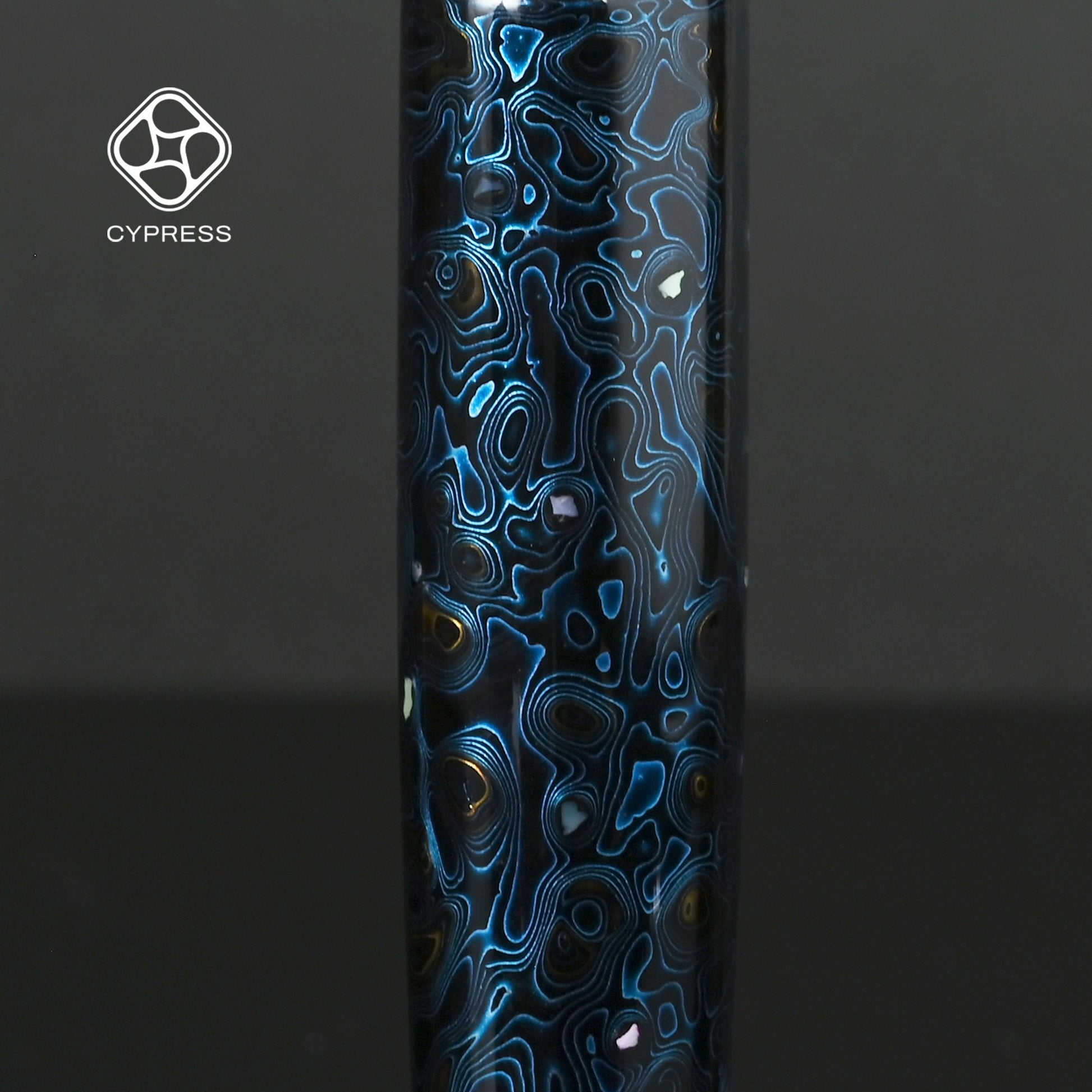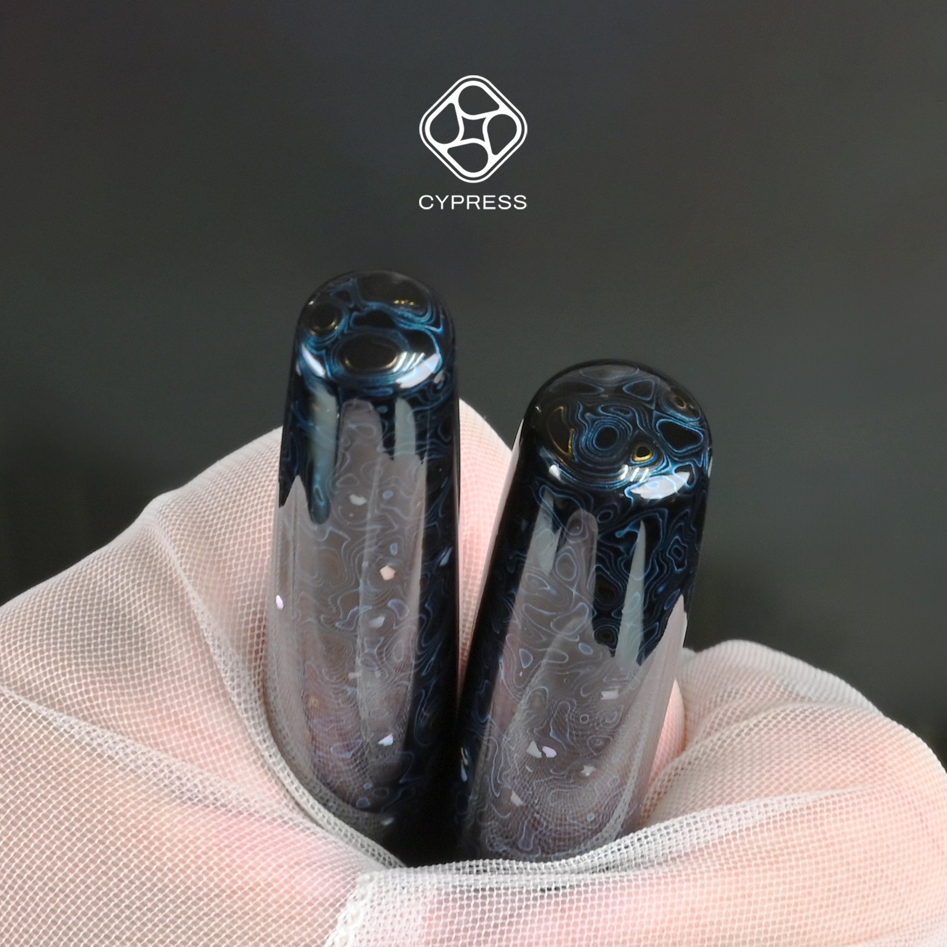 The Cypress Kawari-nuri Indigo Fountain Pen is a masterpiece of traditional artistry, showcasing the unique Kawari-nuri lacquer technique, where multiple layers of Urushi lacquer are skillfully applied to the pen body to create intricate, abstract patterns. Each pen is an individual work of art, as the Kawari-nuri process results in a distinctive, marbled design that cannot be replicated, making every piece a one-of-a-kind collector’s item.