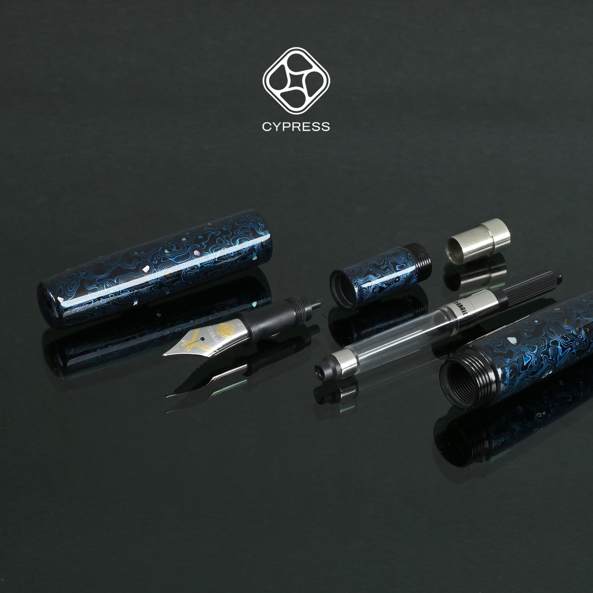 Cypress Kawari-nuri Indigo Fountain Pen with Cypress 18k Medium Nib