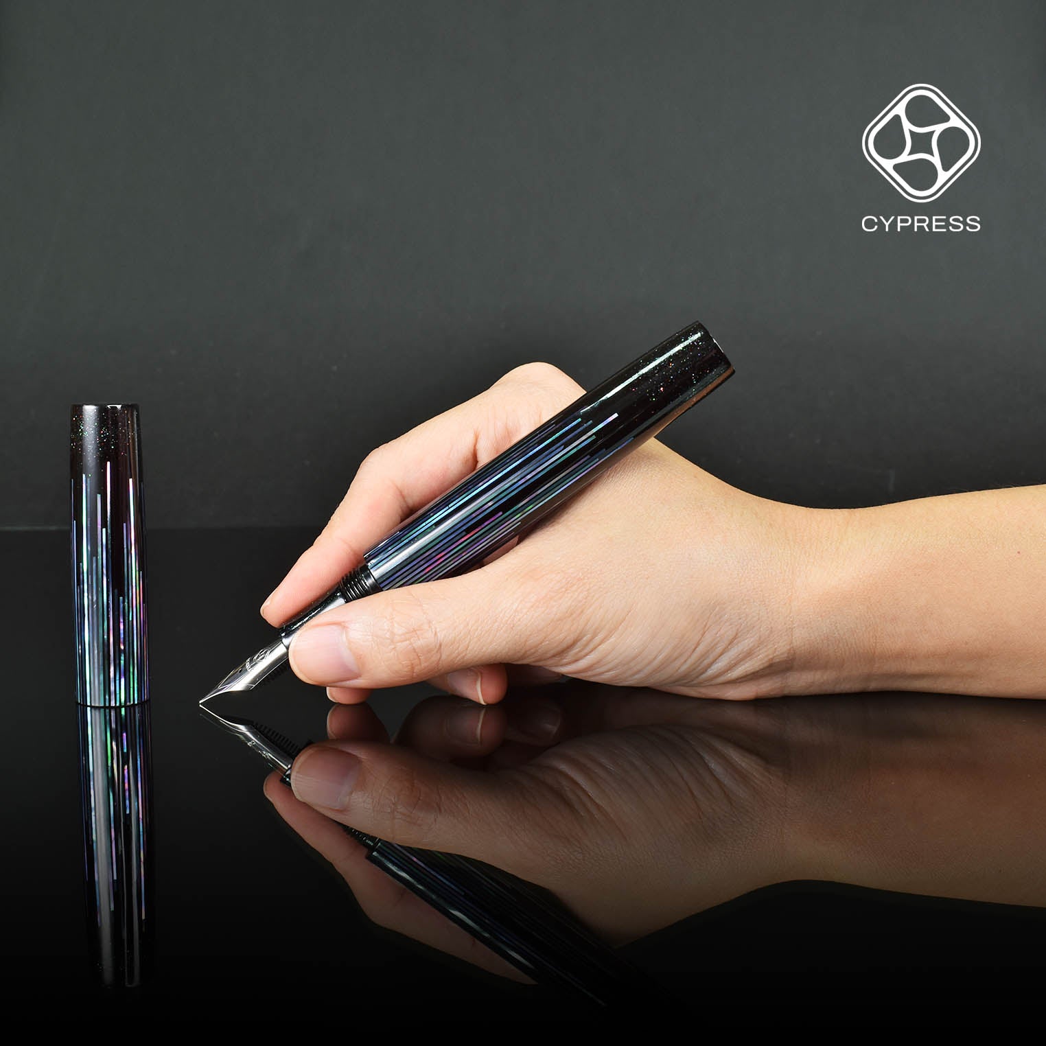 The pen utilizes a cartridge/converter filling system, giving users the option to use either ink cartridges for convenience or bottled ink for a more traditional writing experience. A well-balanced weight and ergonomic grip make the Cypress Modern Raden All Embracing Model A comfortable to use over extended periods, ensuring fatigue-free writing.