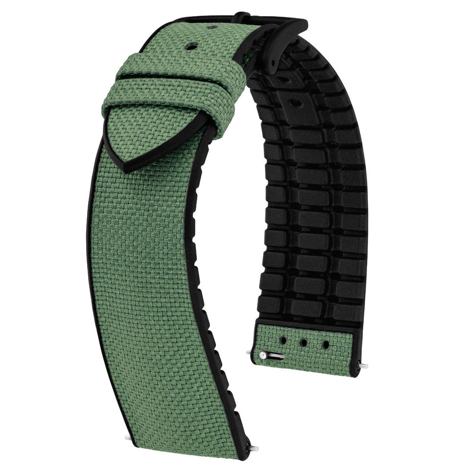 The Hirsch Arne is a high-performance watch strap engineered for durability, comfort, and versatility in aquatic environments. Designed with Hirsch’s proprietary Premium Caoutchouc core and high-tech textile upper, the strap combines technical innovation with modern aesthetics.