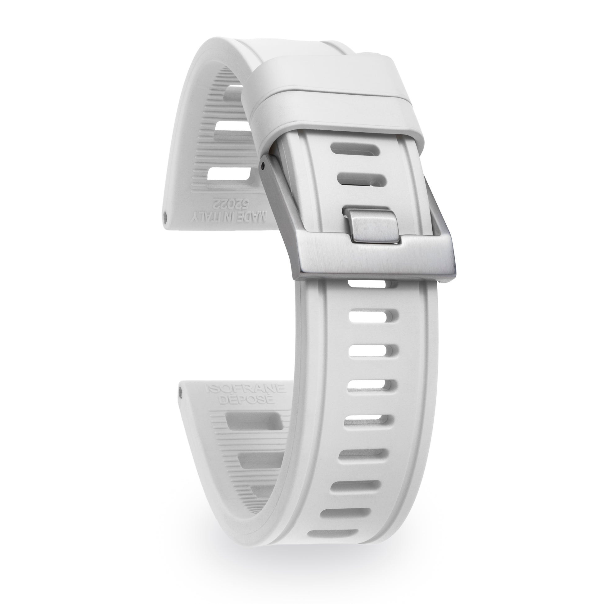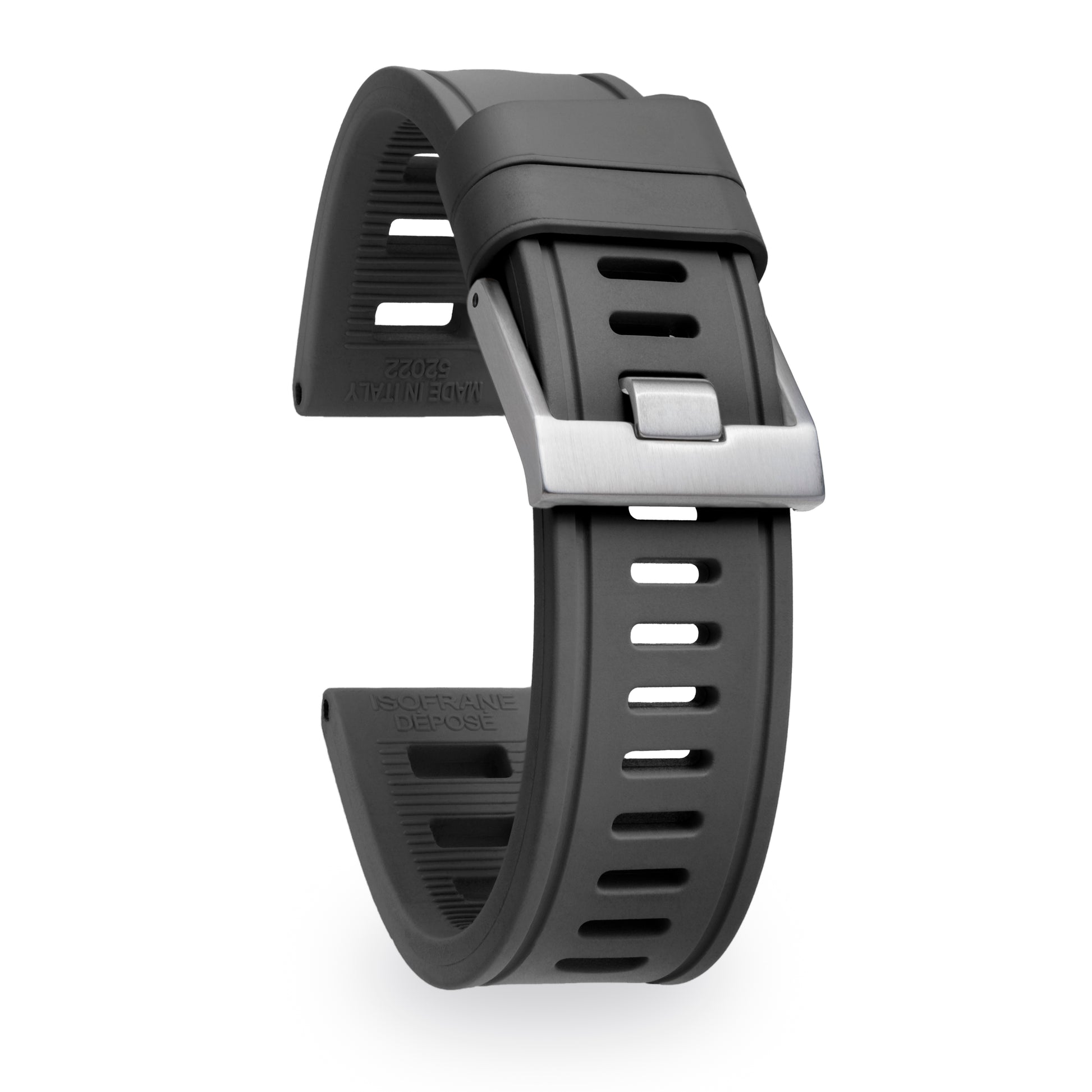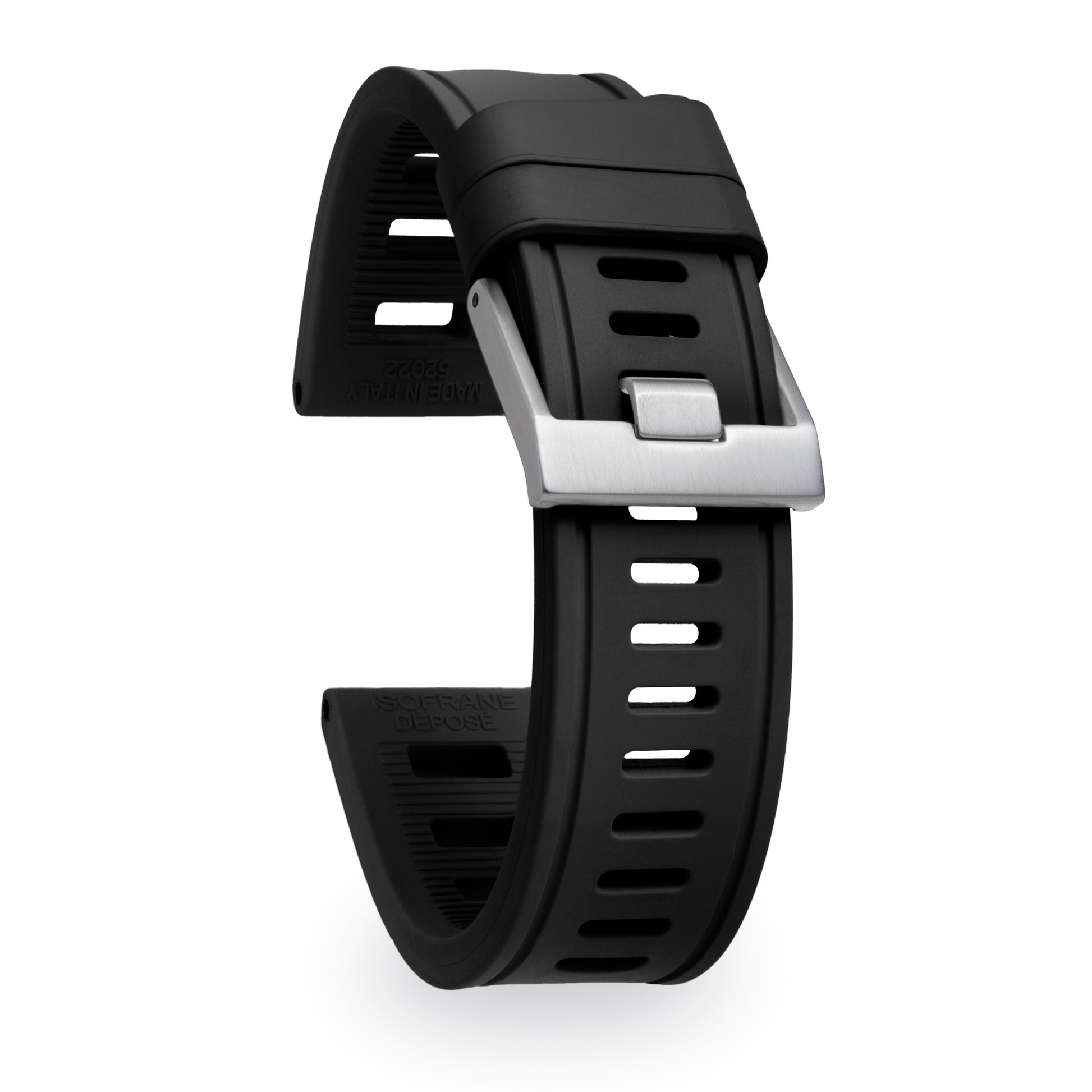 - Buckle: Brushed stainless steel or DLC-coated buckle, screw-in style with engraved ISOfrane logo