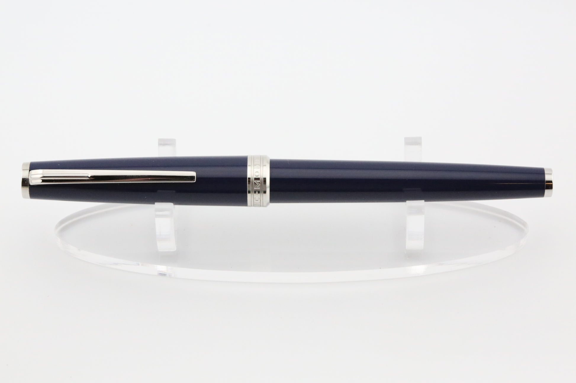 Material: The barrel and cap are crafted from high-quality, glossy blue precious resin, which offers a smooth, lightweight feel and exceptional durability. The platinum-coated accents add a subtle touch of luxury.