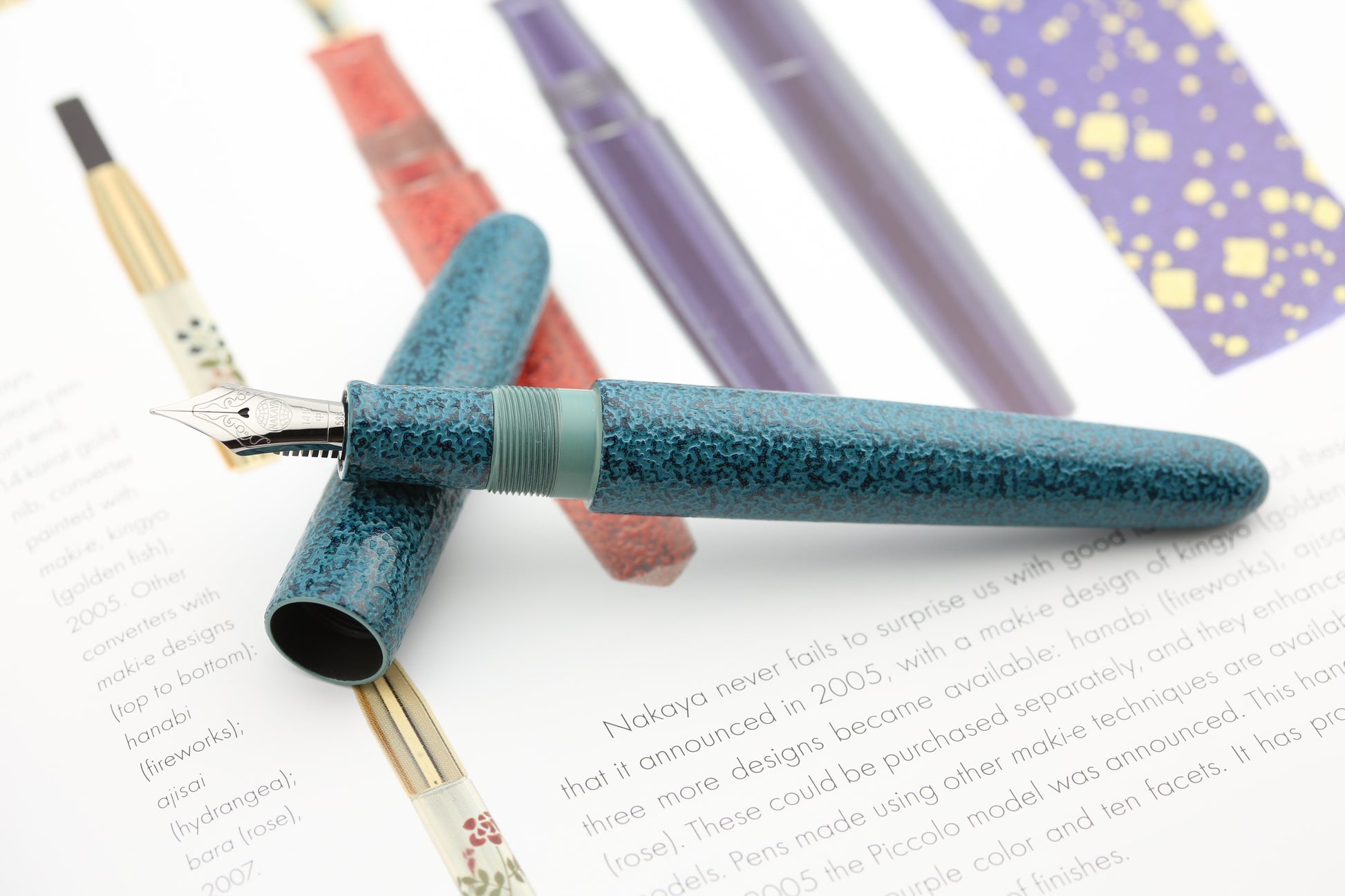 The nib is available in various sizes and is made from 18k gold, offering smooth, precise ink flow. Nakaya's nibs are renowned for their craftsmanship and are hand-tuned to ensure optimal performance. The pen uses a cartridge/converter filling system, providing flexibility with ink choices.