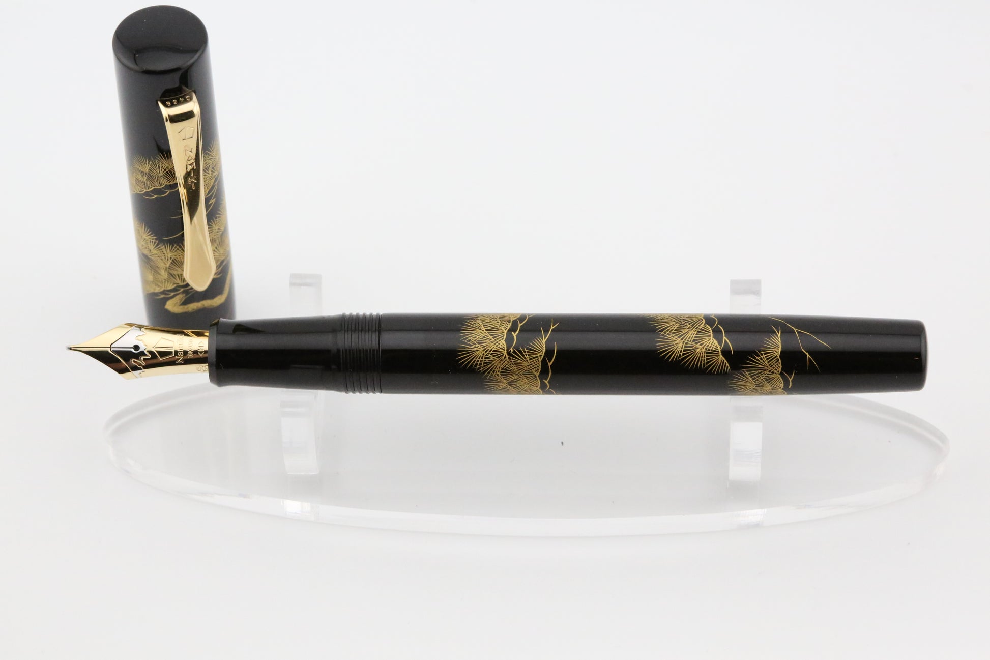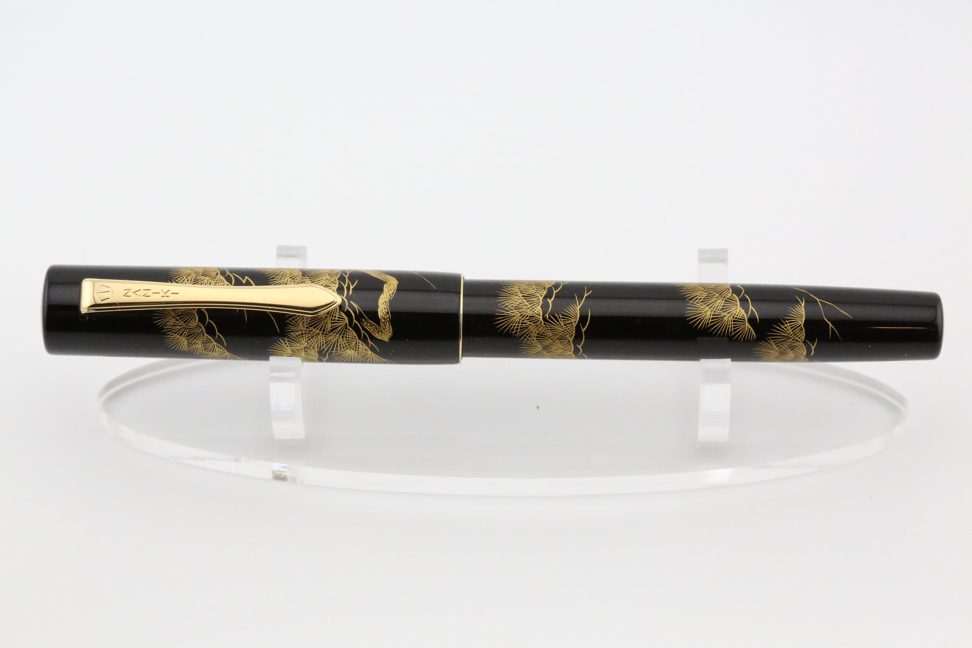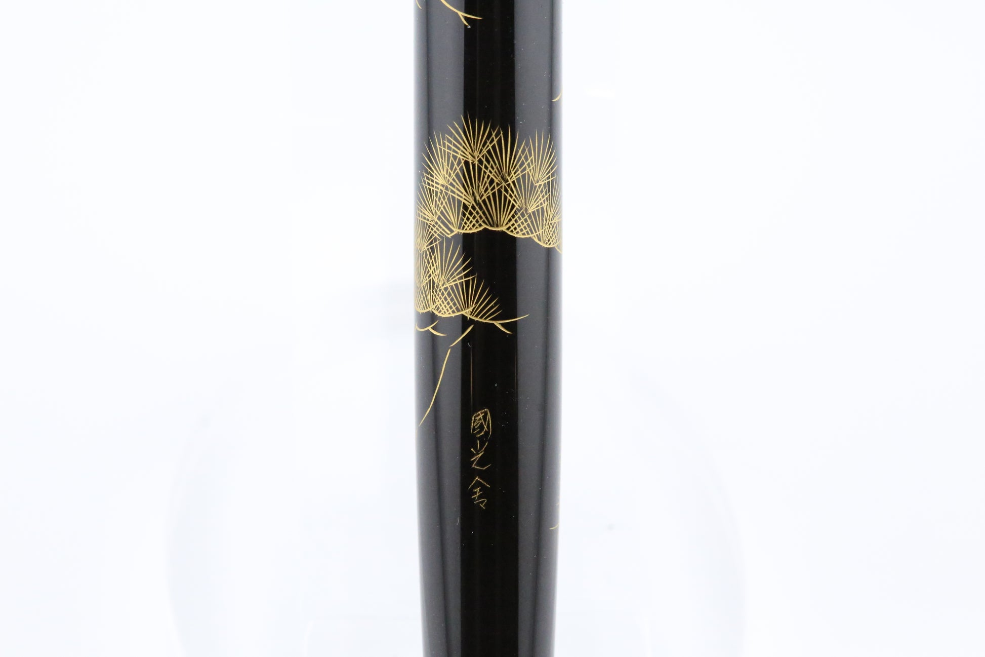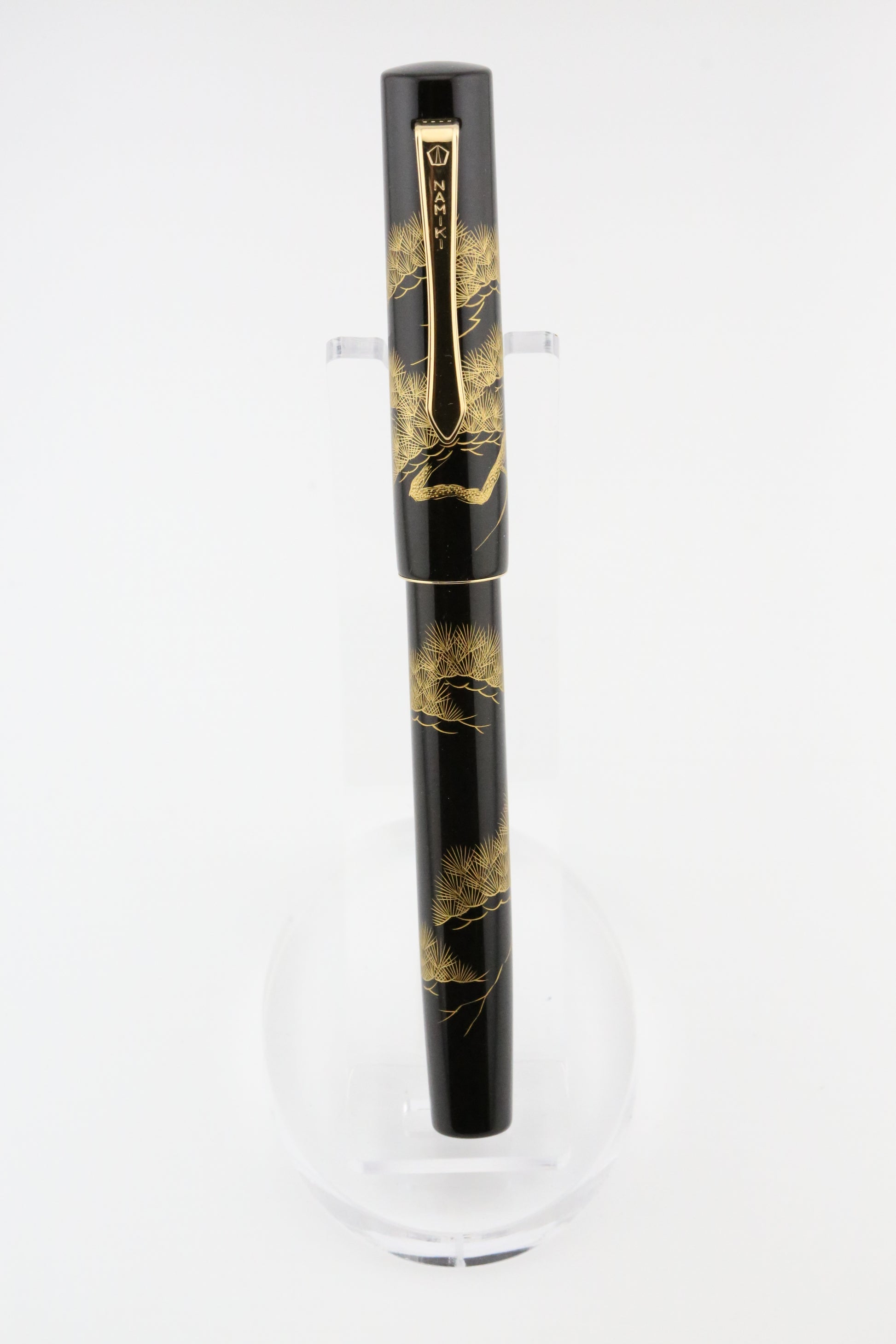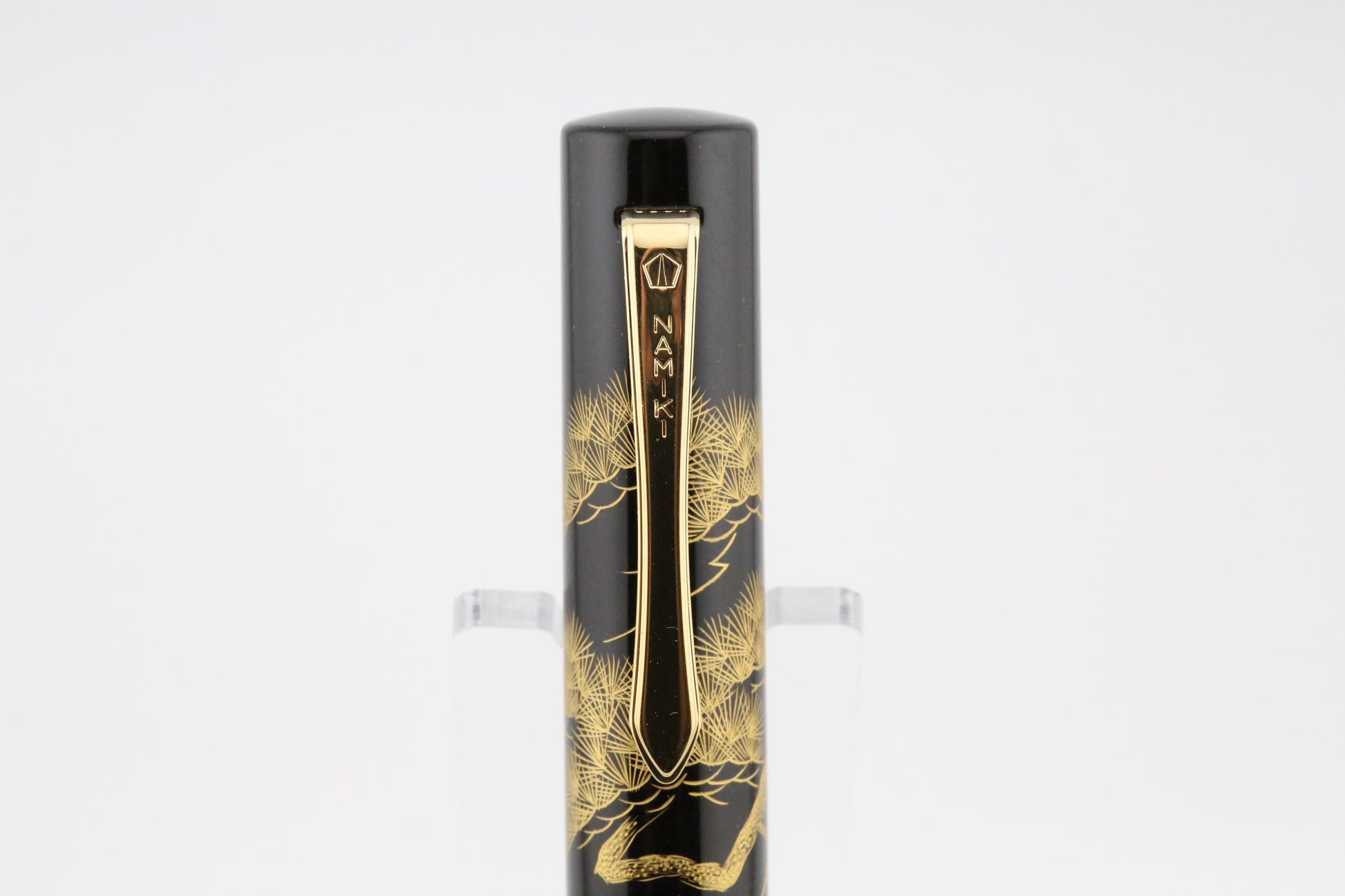 With the Namiki Chinkin Pine Tree Fountain Pen, each piece is unique due to the handcrafted nature of the Chinkin process. This fountain pen also features a **traditional Namiki clip**, adding both functionality and a touch of classic design. The pen is compatible with **Namiki ink cartridges** or can be used with a **convertor** for bottled ink, offering versatility for the user.