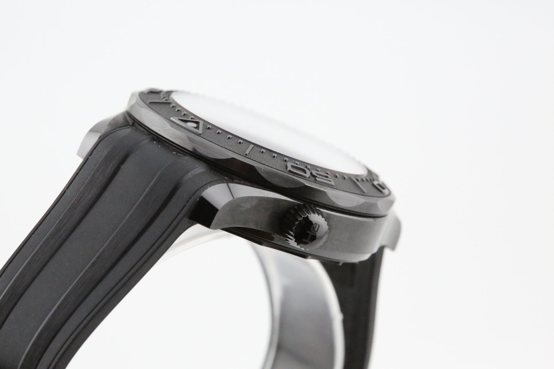 - Bracelet: A sporty black rubber strap with a tang buckle complements the overall blacked-out aesthetic. It's comfortable for everyday wear and water activities.