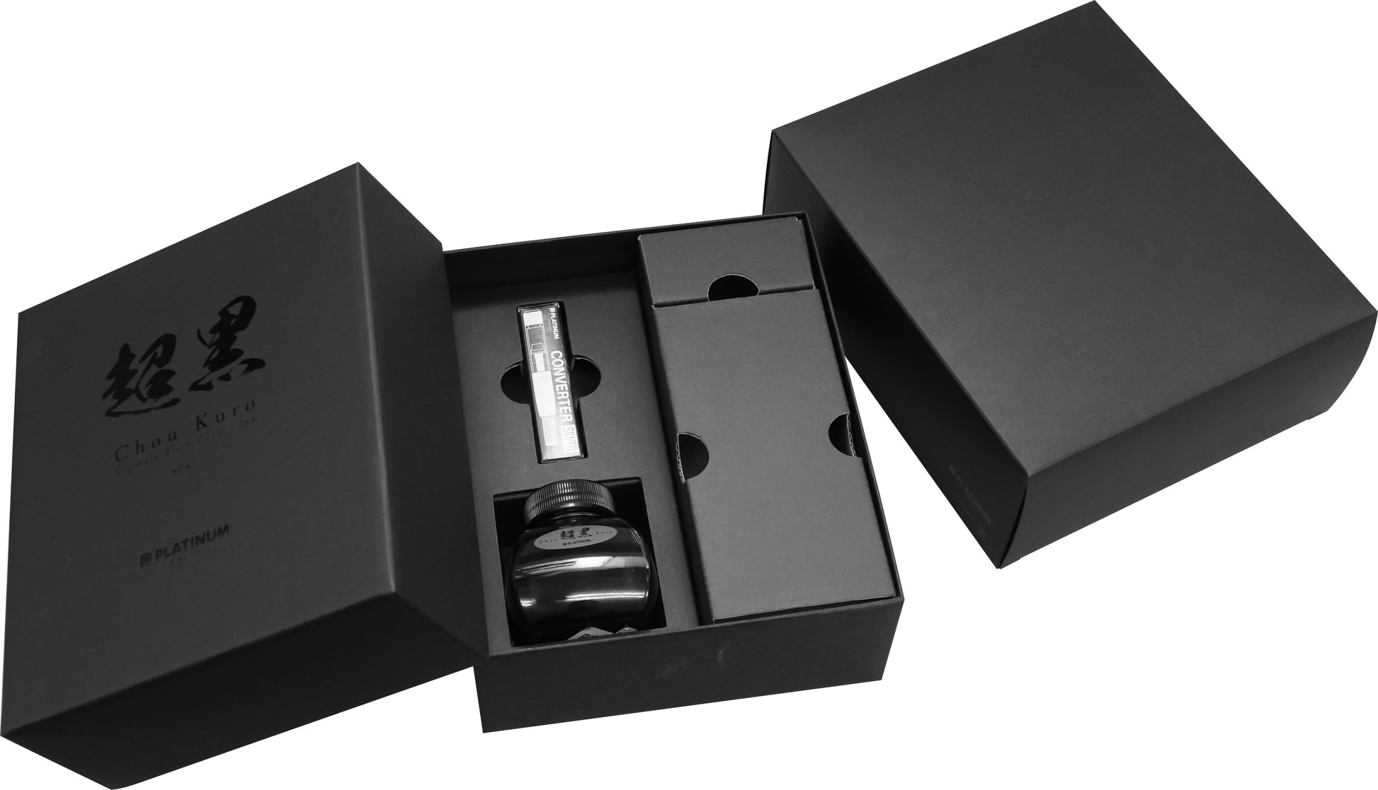The Platinum Chou Kuro Black Ink is a highly pigmented, deep black ink designed for fountain pen enthusiasts seeking unparalleled intensity and durability. Formulated using carbon-based pigments, this ink offers superior lightfastness and water resistance, making it ideal for archival purposes and long-lasting documents. The deep black hue provides sharp, defined lines with excellent contrast on paper, while maintaining smooth flow and consistent performance.