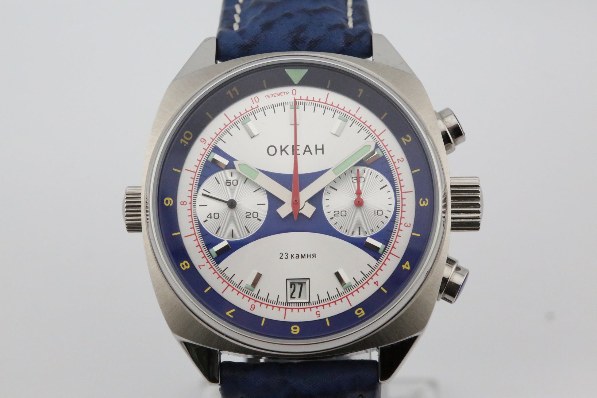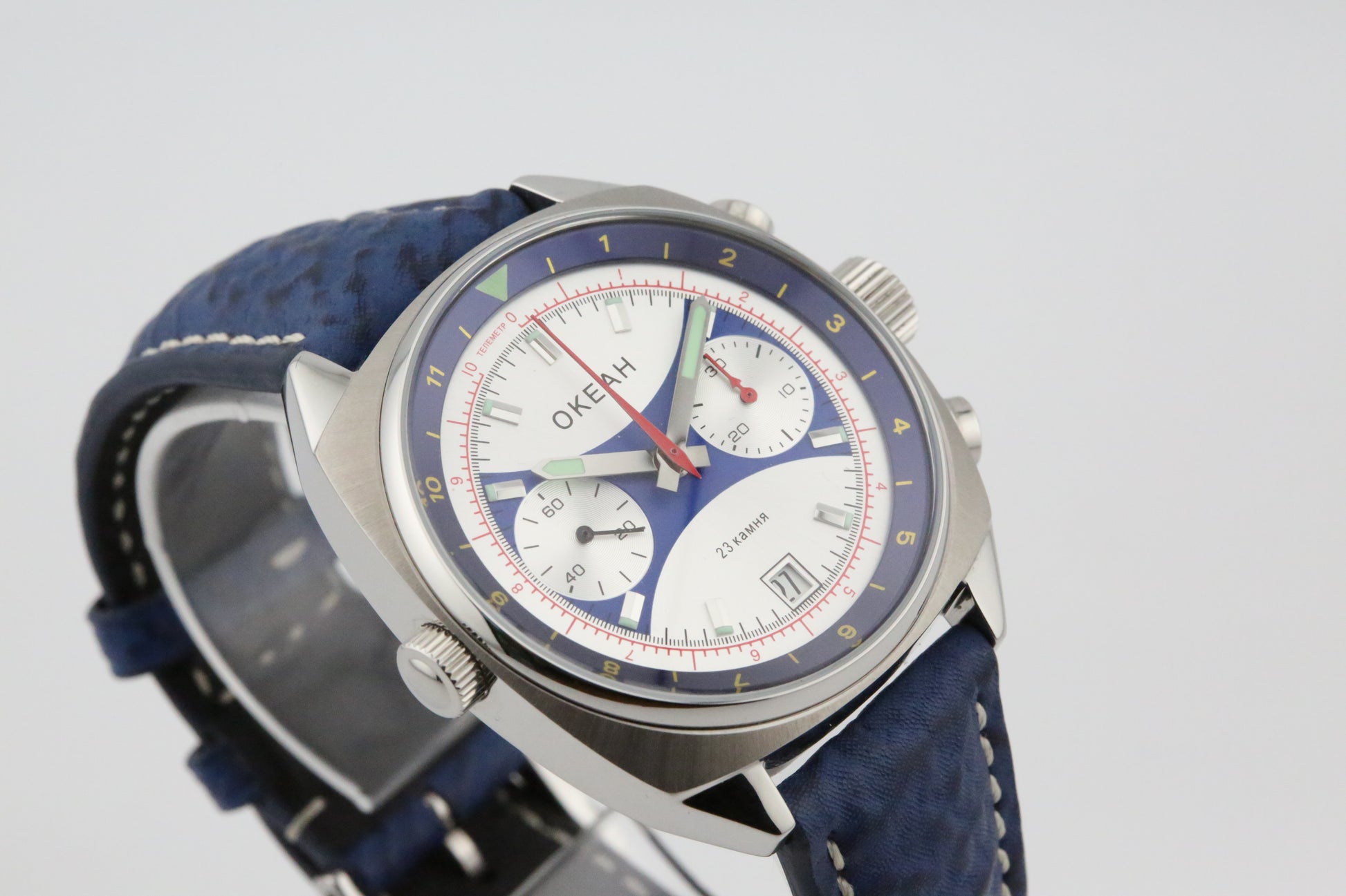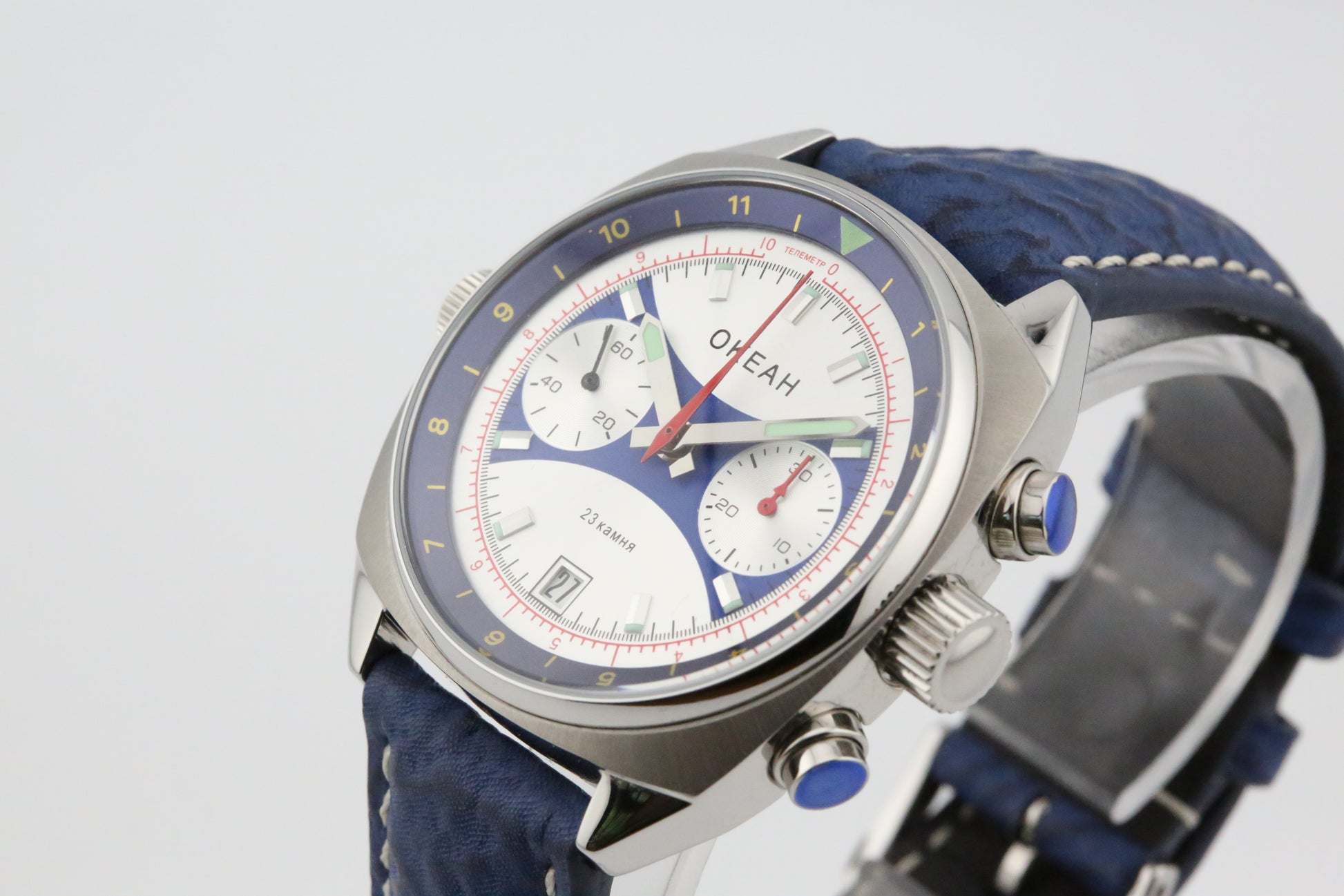 The Poljot Okeah Chronograph is a distinguished timepiece with a rich history, originally designed for the Soviet Navy in the 1970s. Known for its robust build and reliable chronograph functionality, the Okeah (meaning "Ocean" in Russian) is celebrated for its vintage charm and horological significance. This watch is a perfect blend of historical legacy and practical design, making it a coveted piece among collectors and watch enthusiasts.
