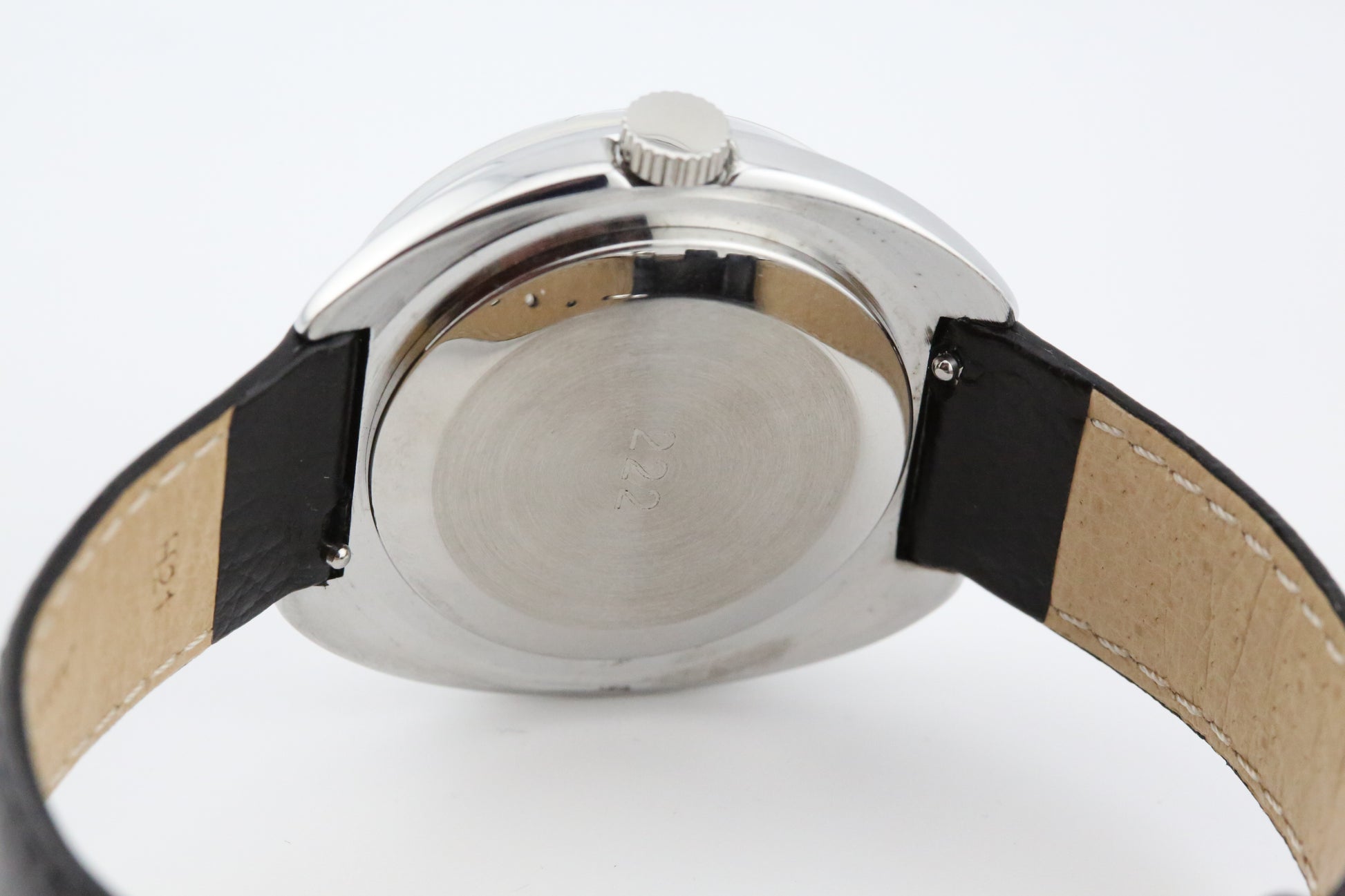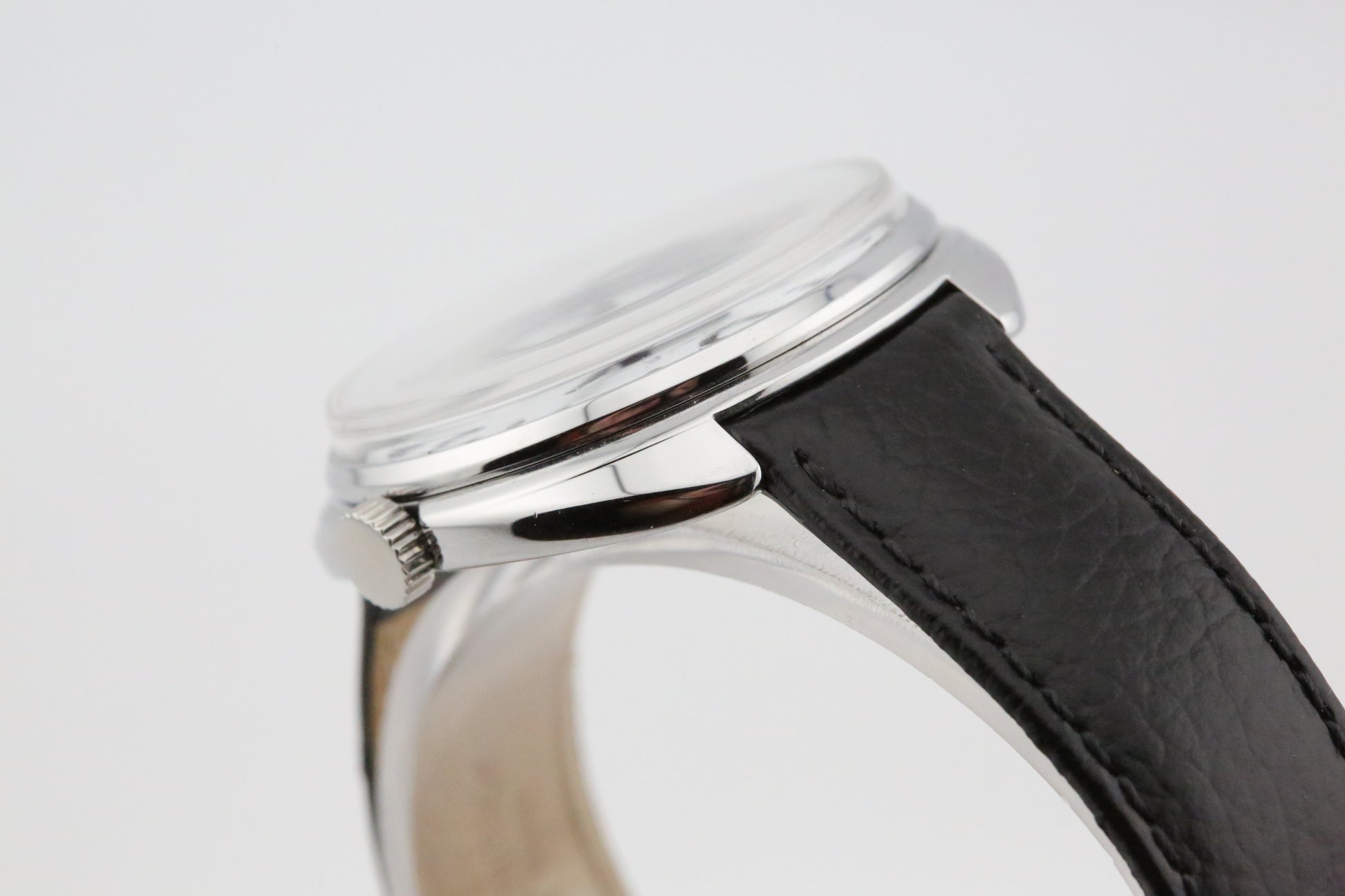 Bracelet Material: Leather strap (often aftermarket, as original straps are rare), typically offered in black or brown, complementing the watch’s vintage style