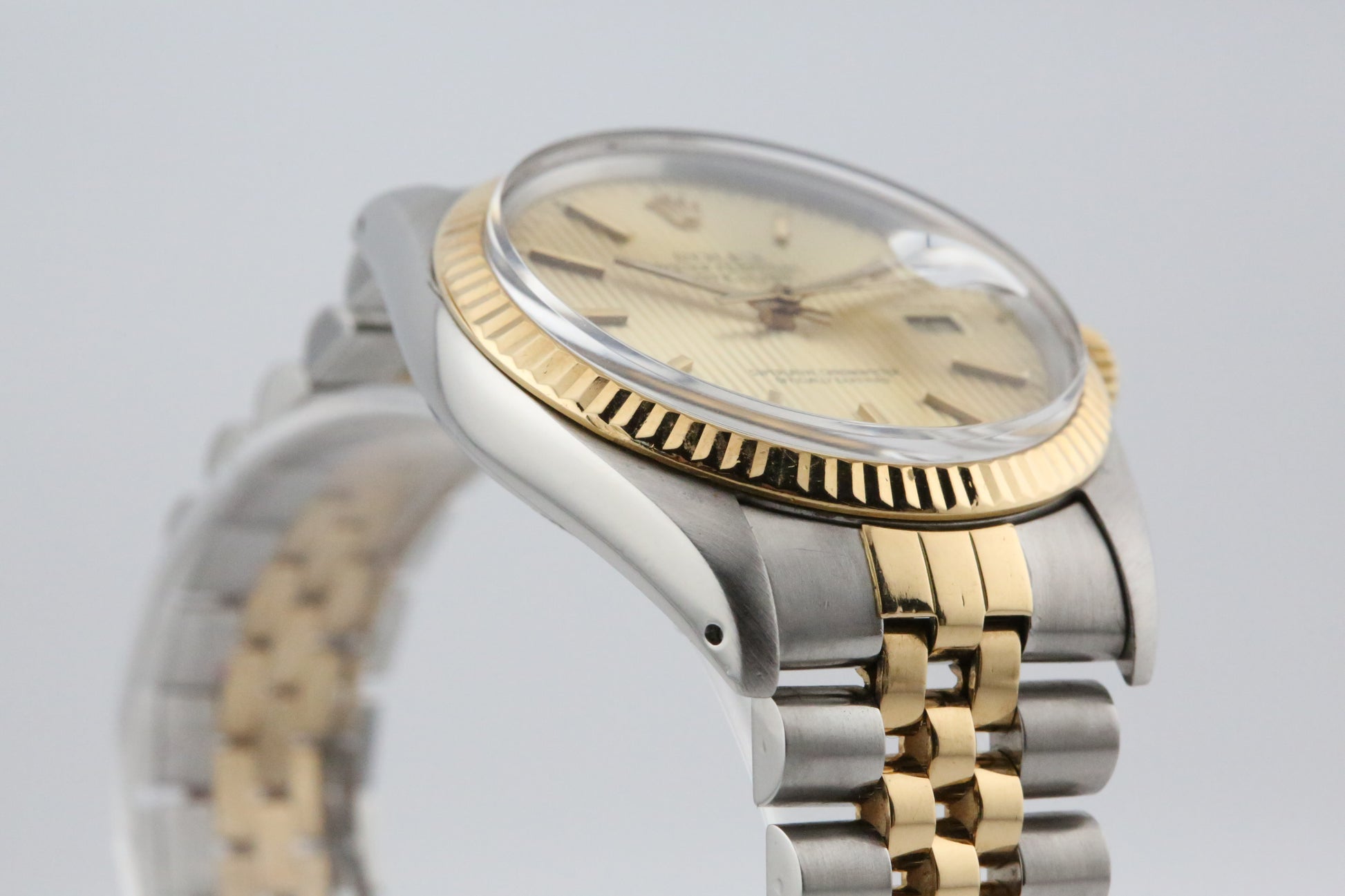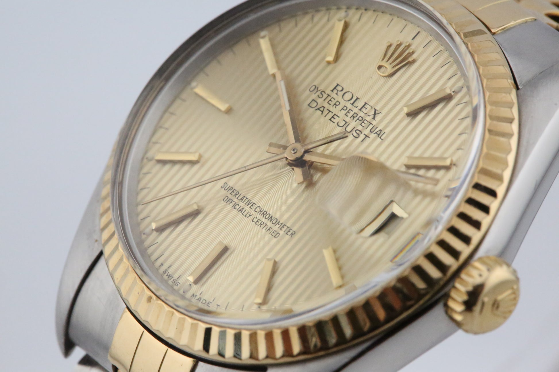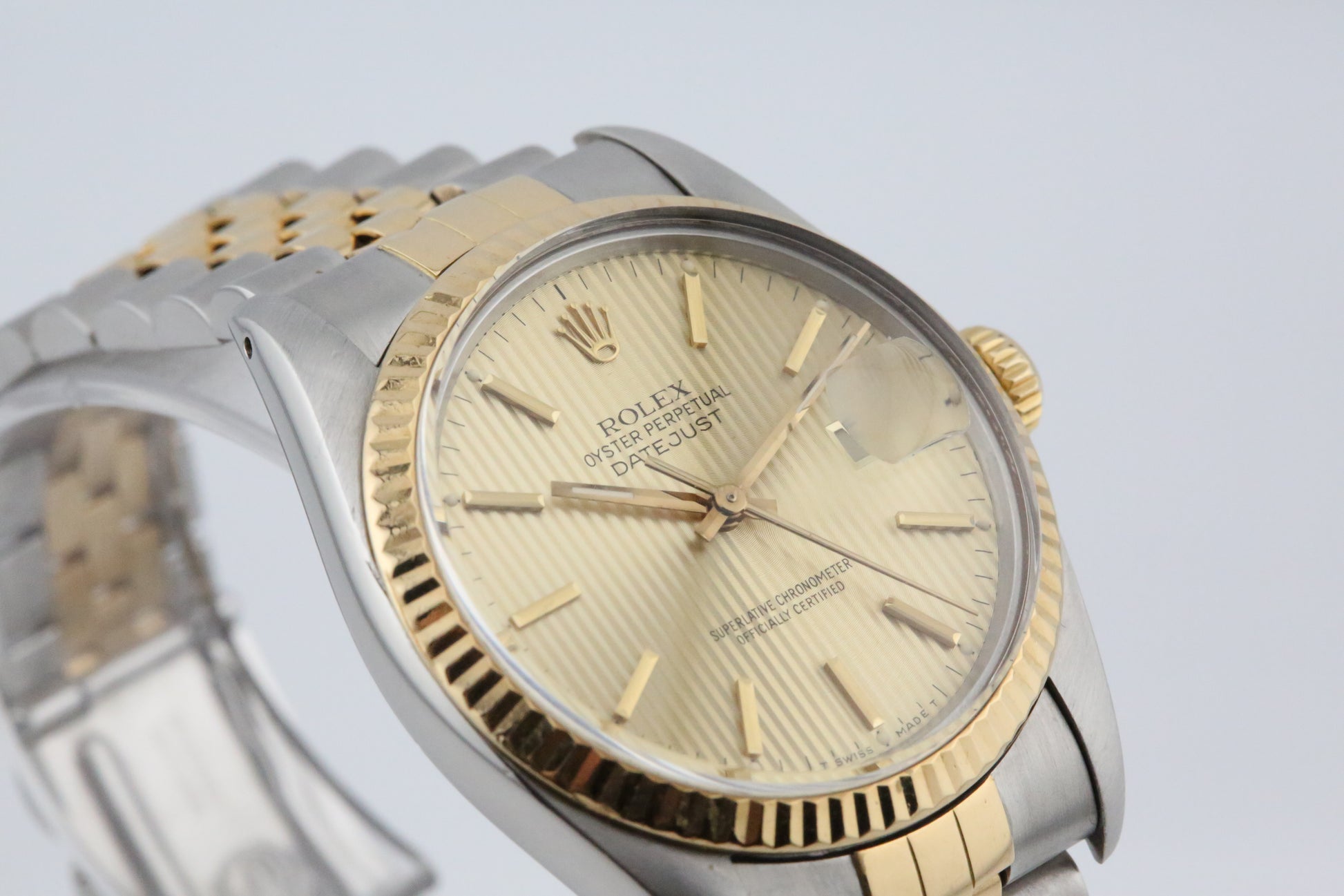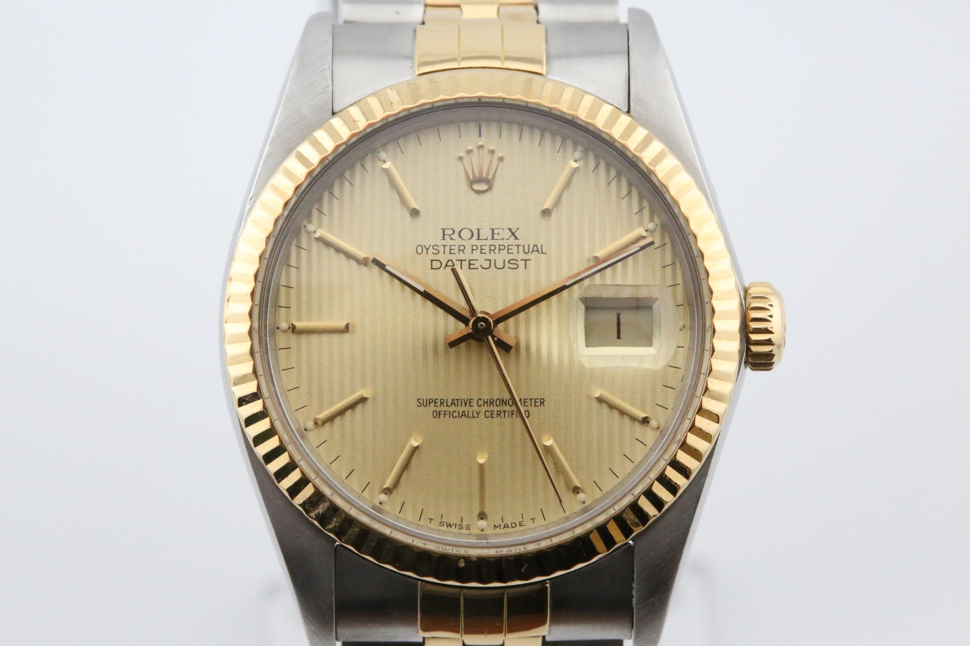 The Rolex Datejust 16013 is an iconic timepiece that blends classic elegance with robust functionality. This model, crafted in a striking two-tone combination of stainless steel and 18K yellow gold, represents the epitome of Rolex’s renowned craftsmanship and timeless design. The Datejust 16013 is highly regarded for its versatile style and precision, making it a coveted choice among watch enthusiasts and collectors.
