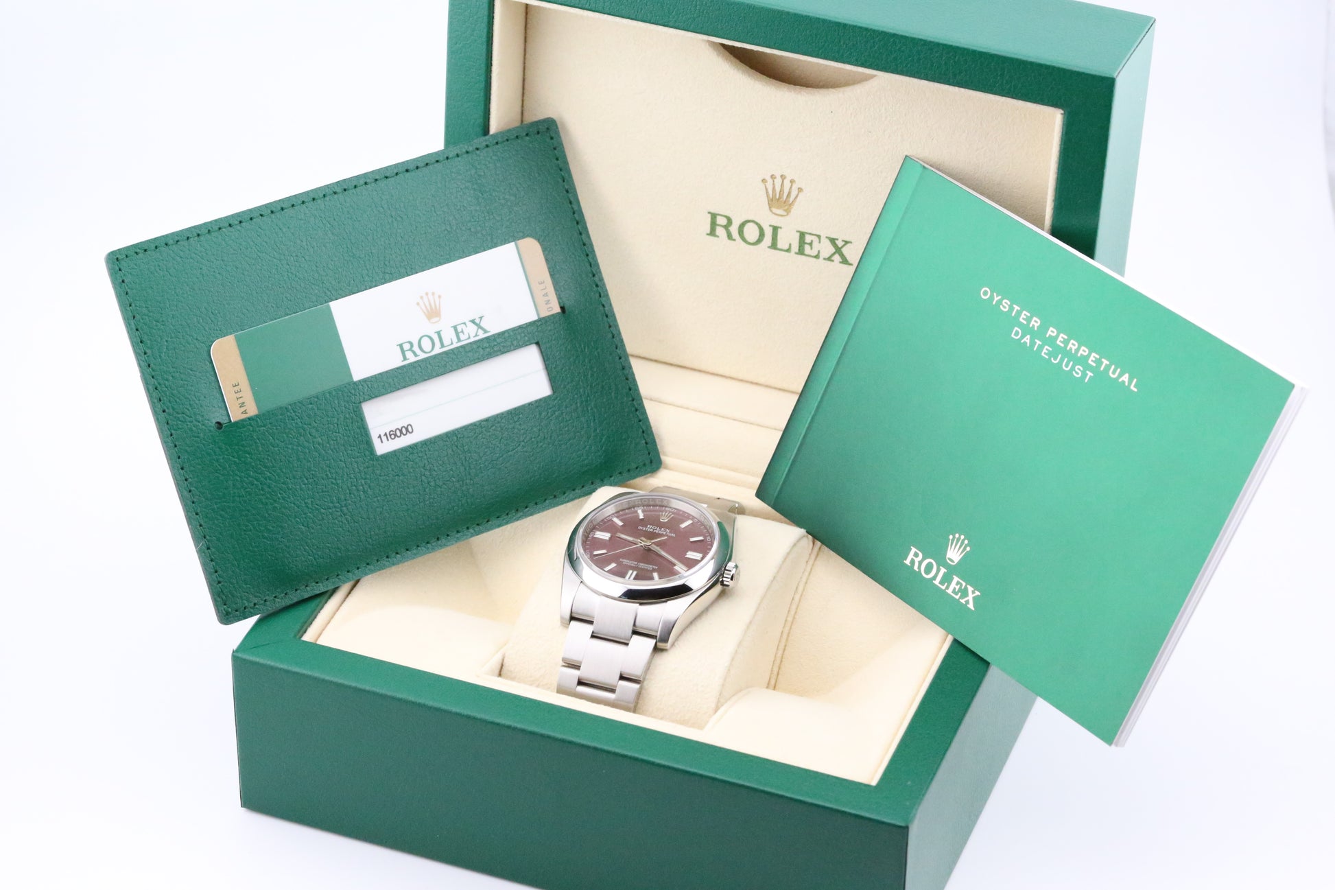 The Rolex Oyster Perpetual 116000 is a classic timepiece known for its robust construction, timeless design, and exceptional reliability. This model embodies the essence of the Rolex brand with its precision engineering and elegant aesthetic.