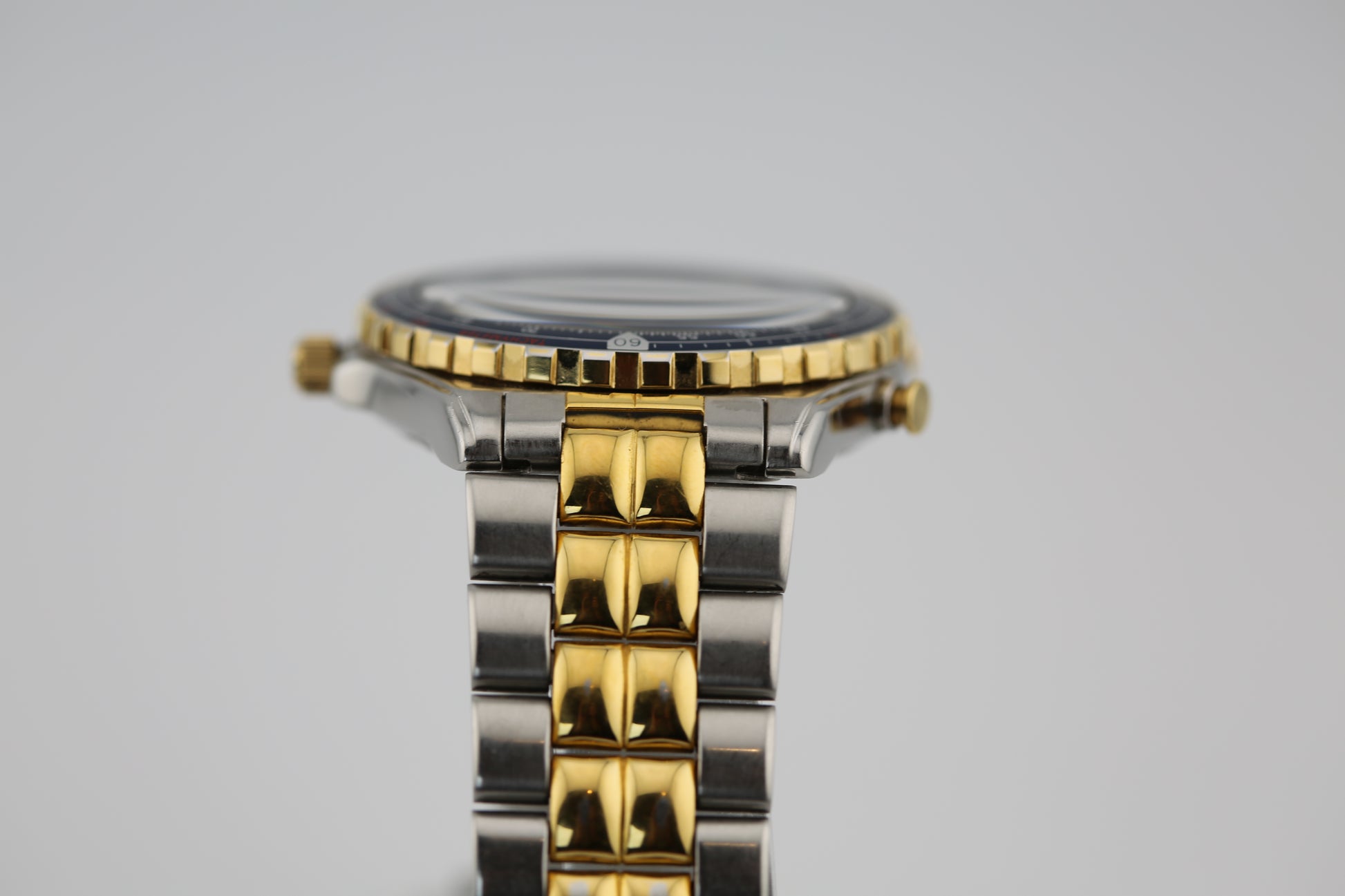 Pushers: Two side-mounted pushers at the 2 o'clock and 4 o'clock positions to control various functions