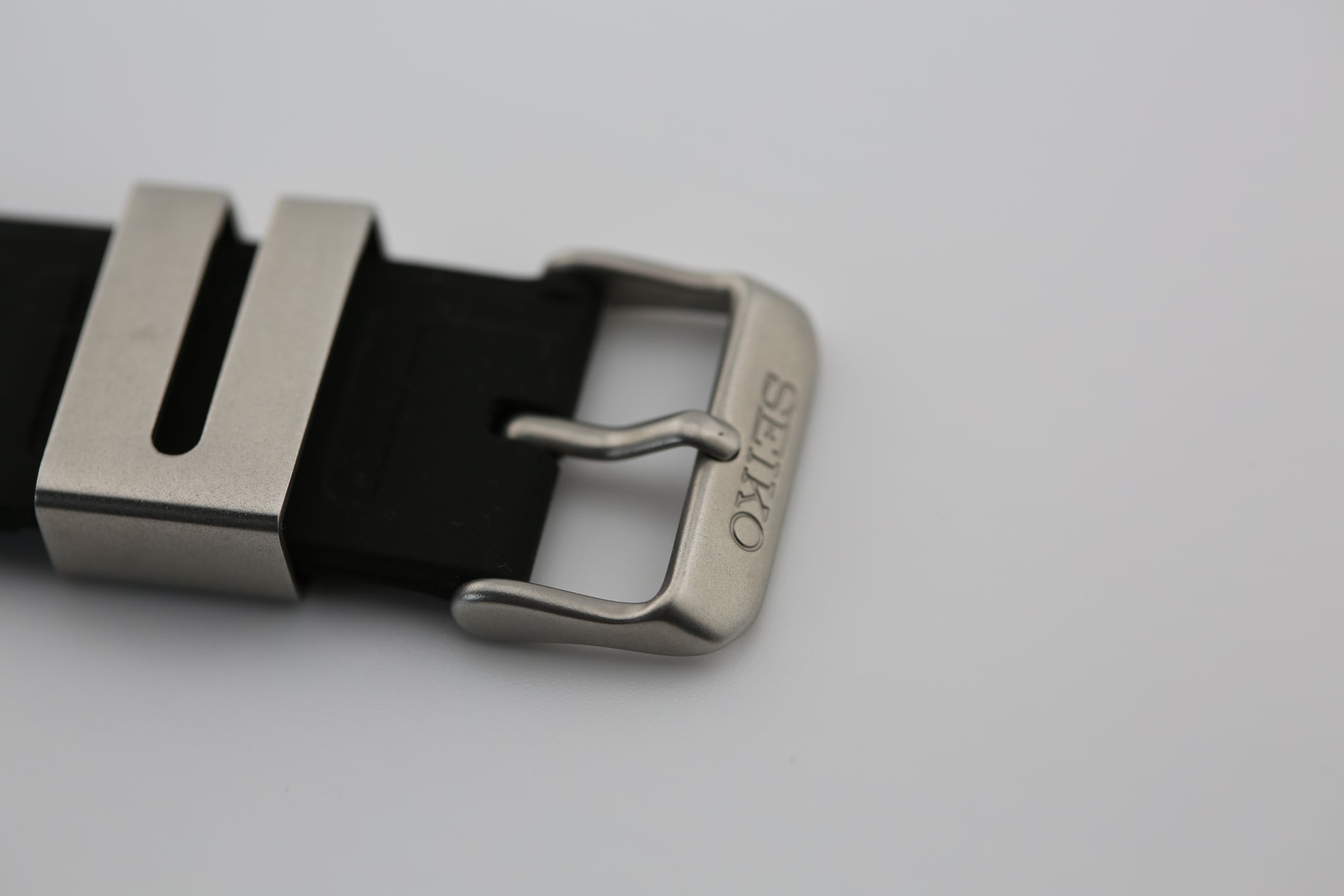 Strap Material: Black silicone strap with ribbed detailing, offering flexibility and comfort during underwater activities
