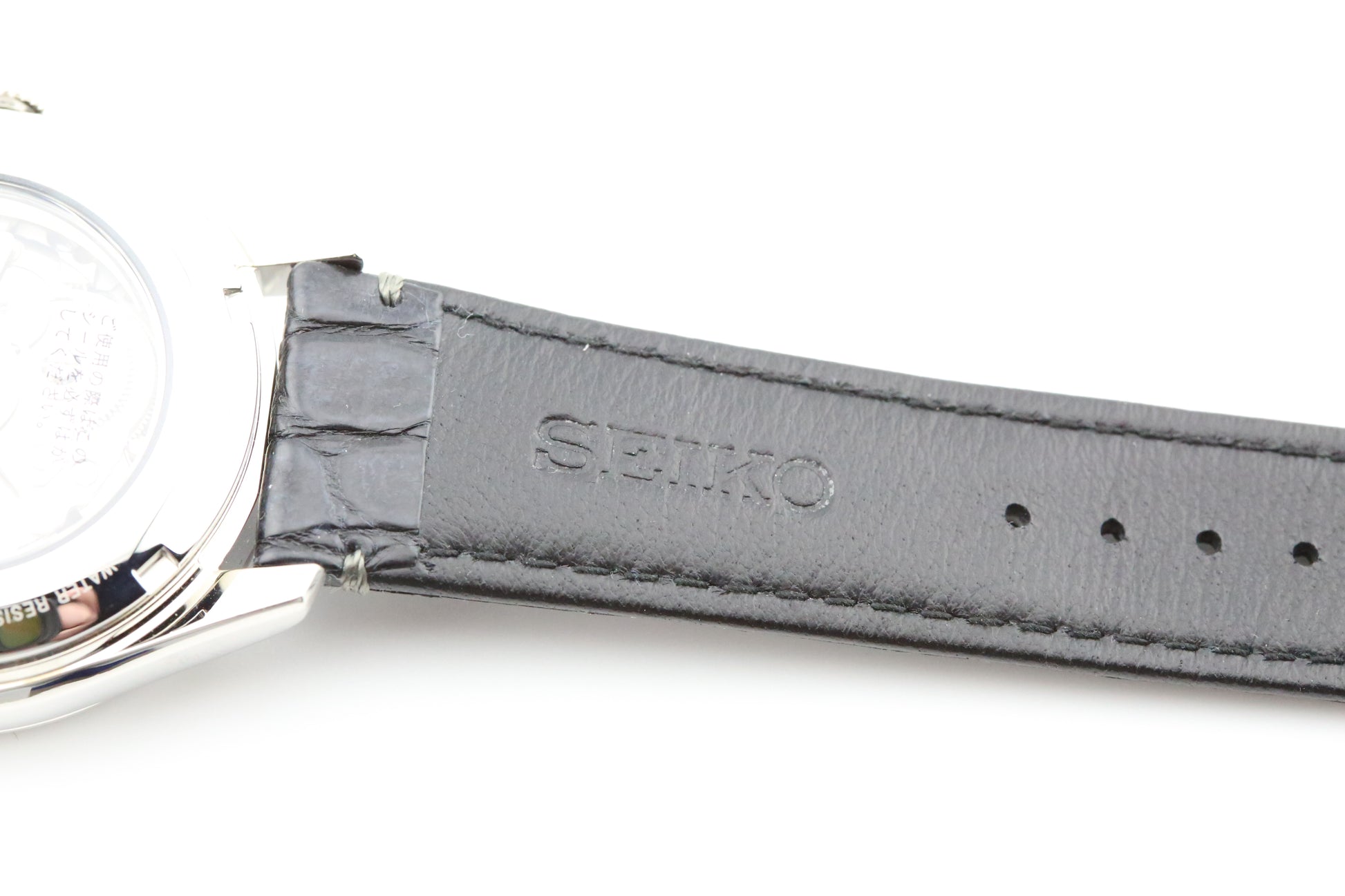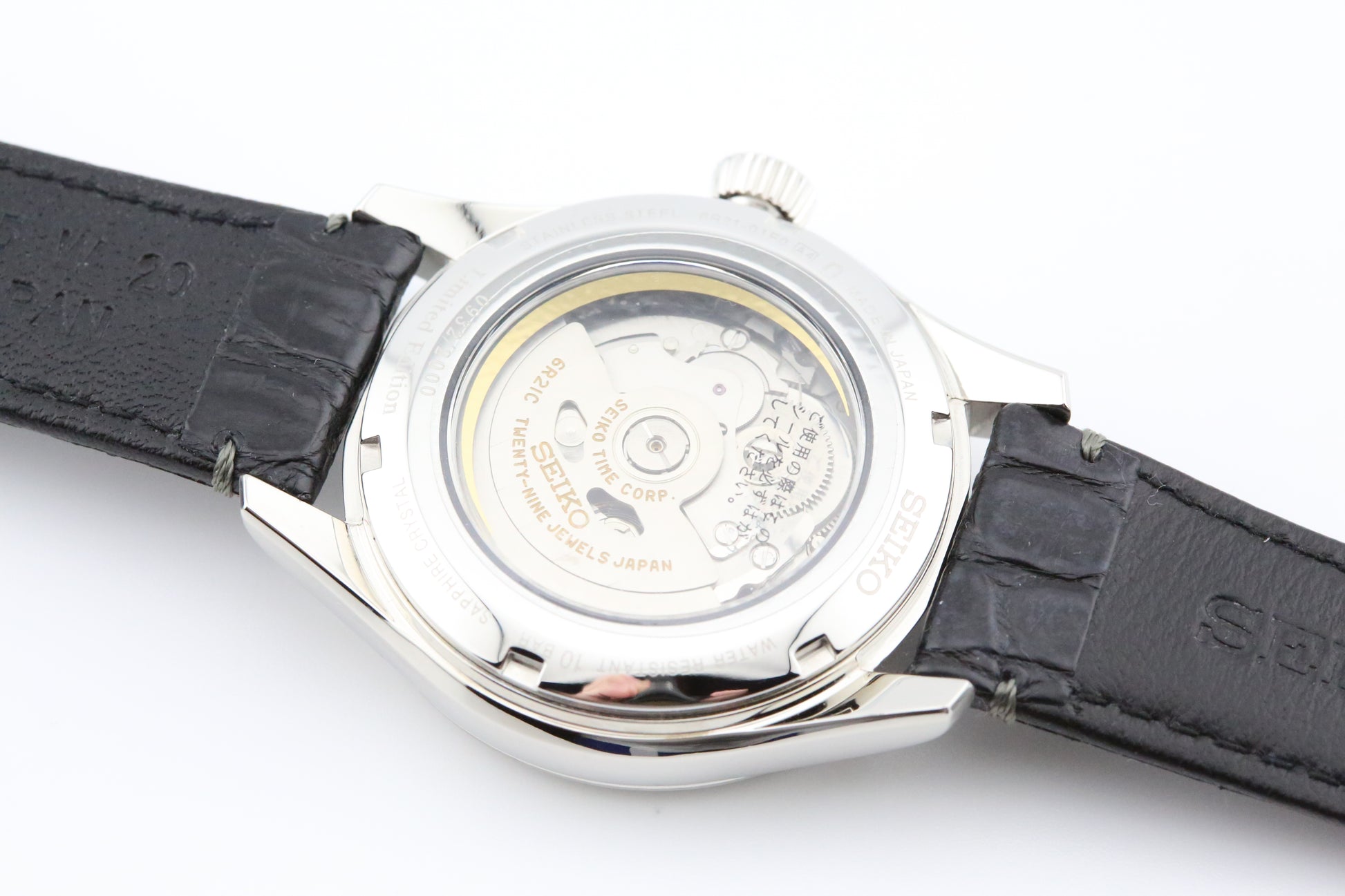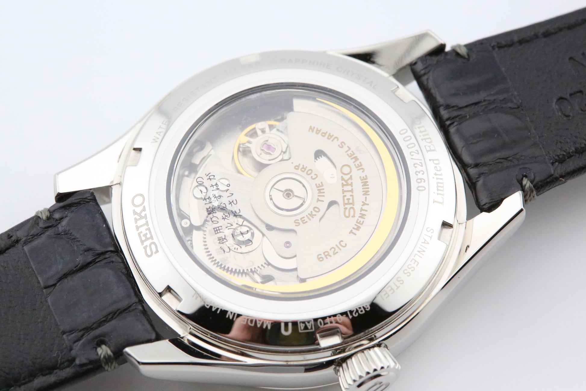 Case Back: The case back is transparent, revealing the inner workings of the 6R27 movement, complete with a decorative rotor. This allows wearers to admire Seiko’s horological engineering.