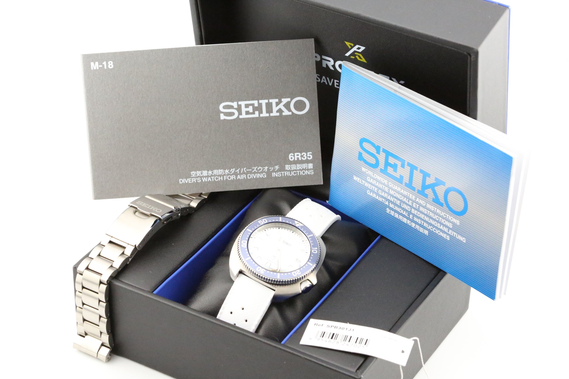 Special Edition Box: Includes unique "Save the Ocean" presentation box, featuring imagery and information about marine conservation efforts supported by Seiko