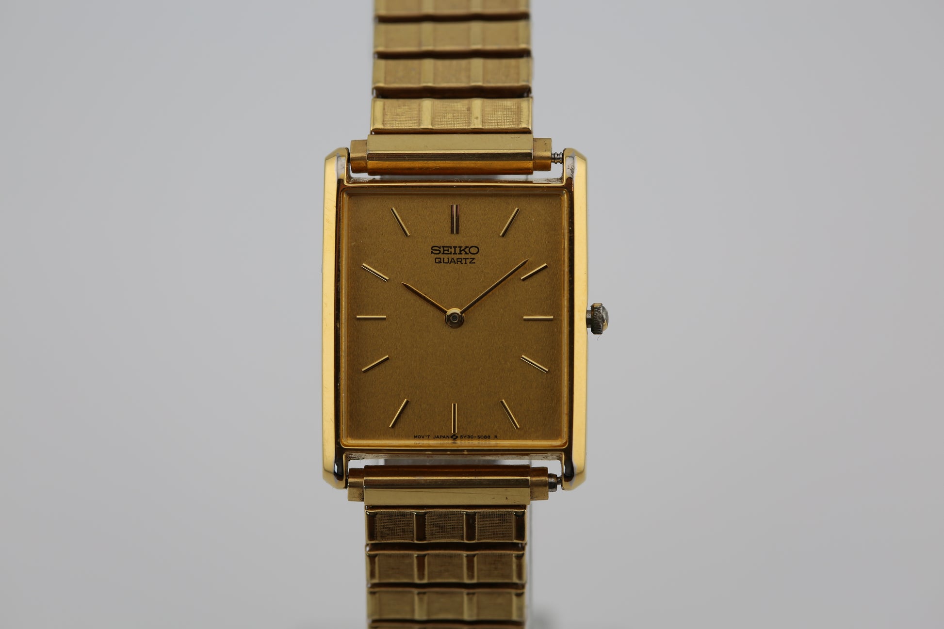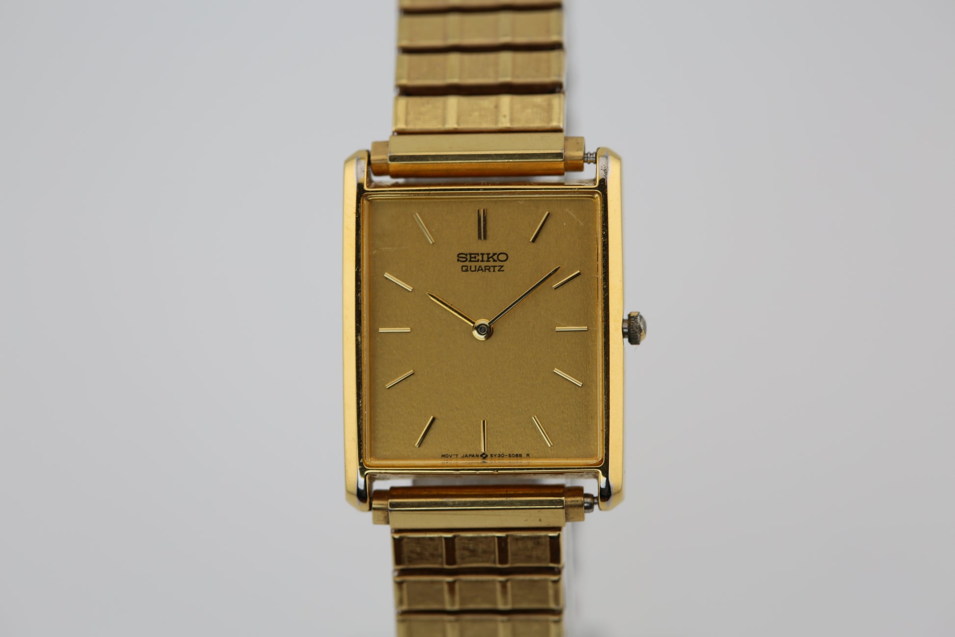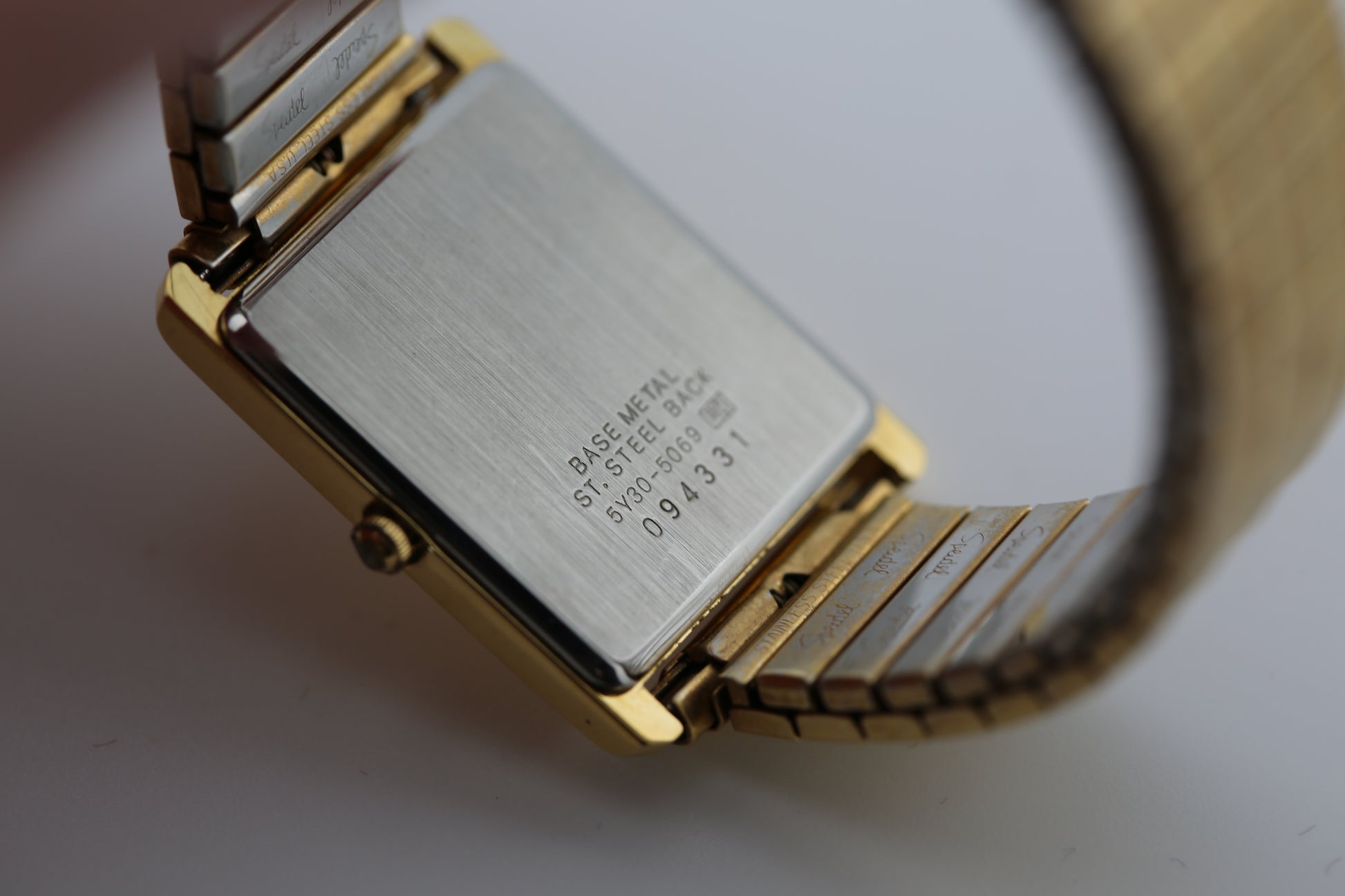 The Seiko 5Y30-5069 Tank Watch is a sophisticated, vintage timepiece that showcases a refined rectangular case design, inspired by classic "tank" watches. It combines elegant aesthetics with Seiko’s reliable quartz technology, offering a timeless piece ideal for formal wear. Below are the detailed technical specifications: