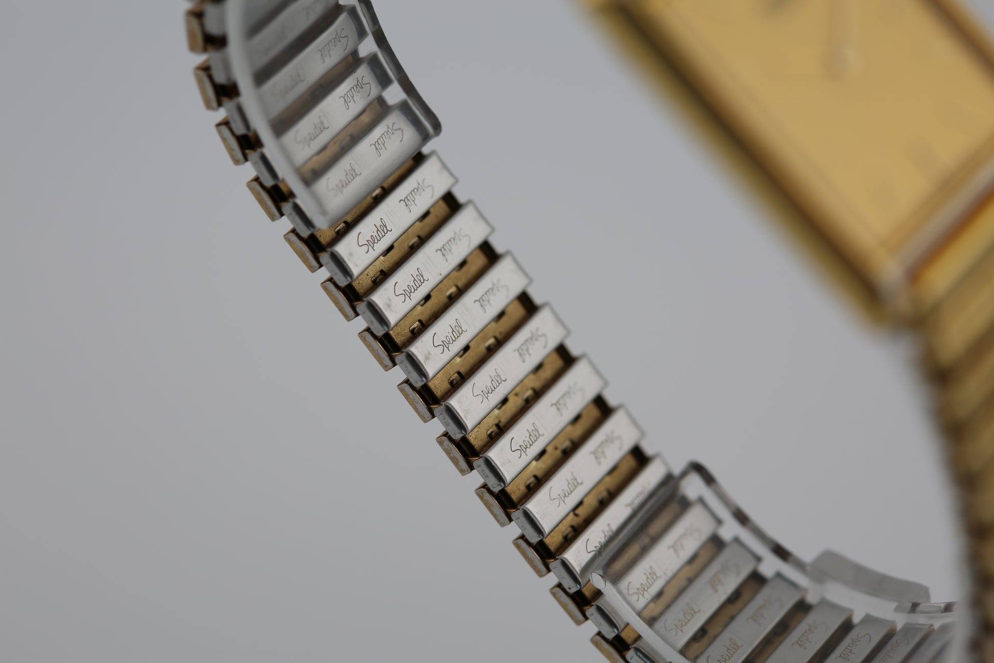 Dial Color: Gold-tone dial with vertical brush finish for a refined, minimalist appearance