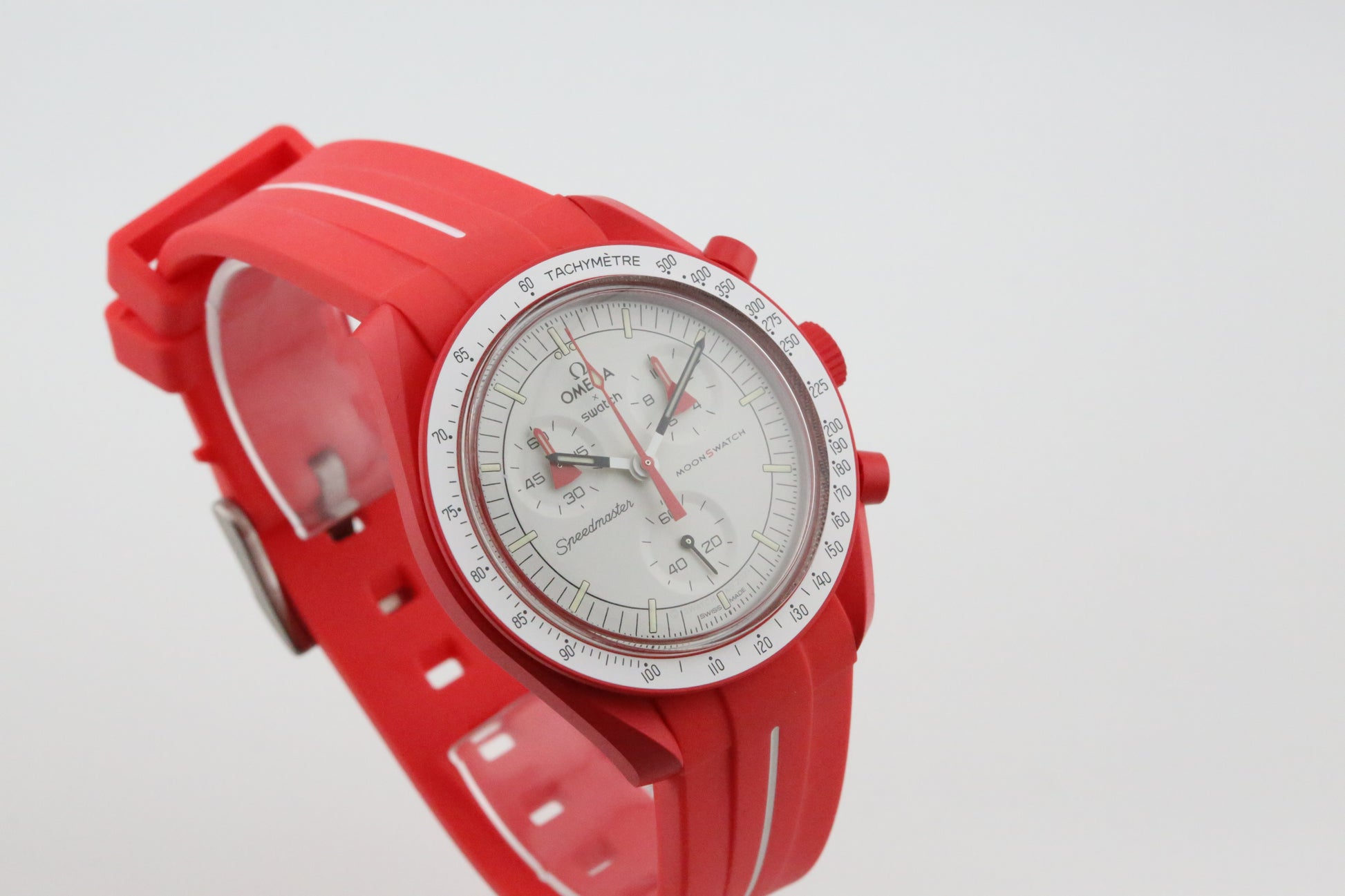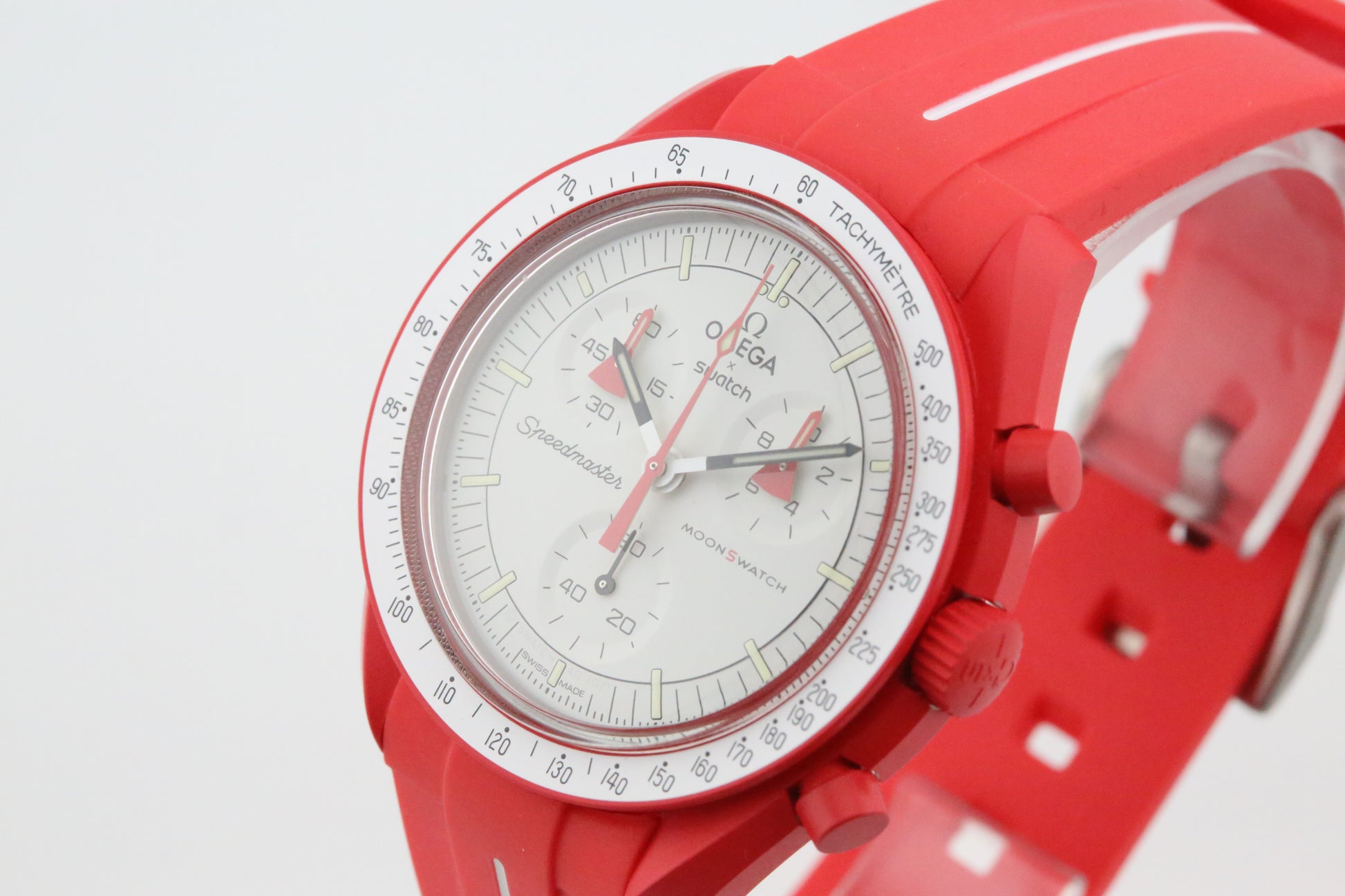 The Omega x Swatch Moonswatch Mission to Mars is a playful yet high-quality tribute to the spirit of space exploration. This watch blends Swatch's innovative materials with Omega's iconic Speedmaster design, celebrating the adventurous journey to Mars. It's a part of the broader Moonswatch collection, making space-inspired watches more accessible to enthusiasts and collectors.